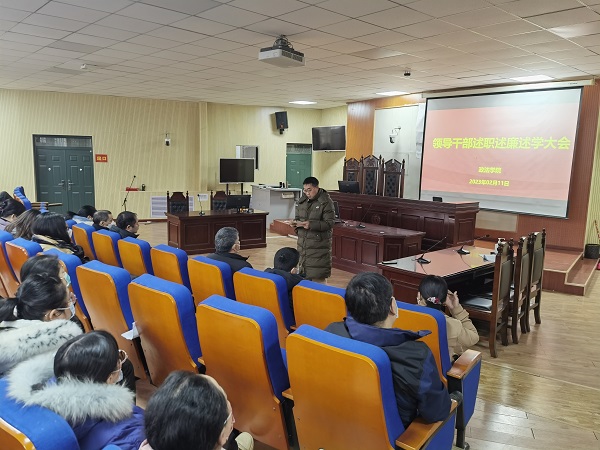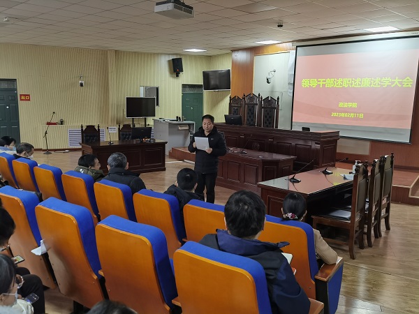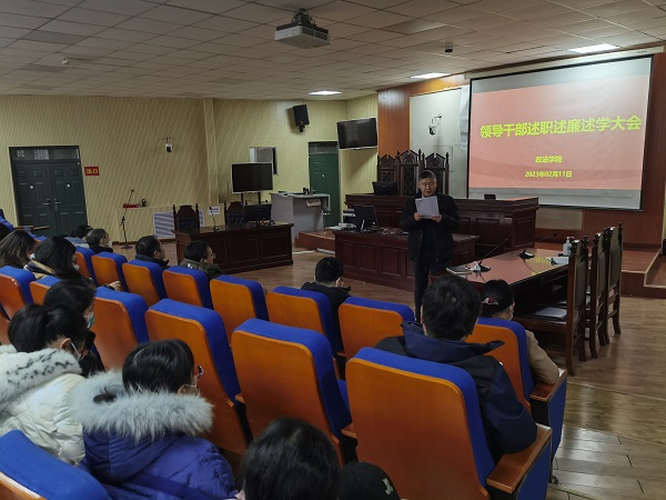 根据学校2022年中层领导人员年度考核安排,2月11日上午,政法学院在政法楼112召开了2022年度领导干部述职述廉述学大会,政法学院全体教职工参加了会议。会议由学院党委书记宋德涛主持。