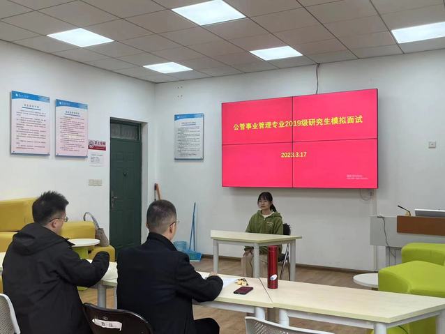 为帮助考研学生掌握面试技巧,提高面试能力和考研成功率,3月17日上午,政法学院在政法楼103室举办2023届公共事业管理专业研究生复试模拟会。政法学院公共事业管理专业张绍阳、张家旗、冯华超三位老师担任评委,学院公共事业管理专业研究生初试上线学生参加模拟复试。