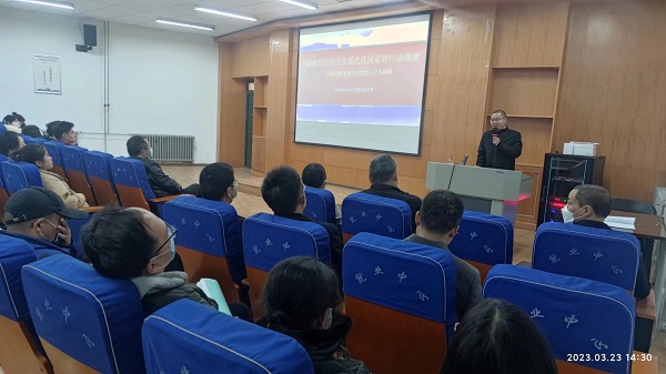 宣讲会上,李贵老师以“全面建设社会主义现代化国家的行动纲领——准确完整系统学习党的二十大精神”为题,将党的二十大报告内容脉络进行详细梳理,从立足新时代看新成就、立足新问题看新思想、立足新征程看新任务、立足新环境看新战略、立足新形势看新斗争、立足逻辑主线看本质等六个方面对报告内容进行了详尽的解读。