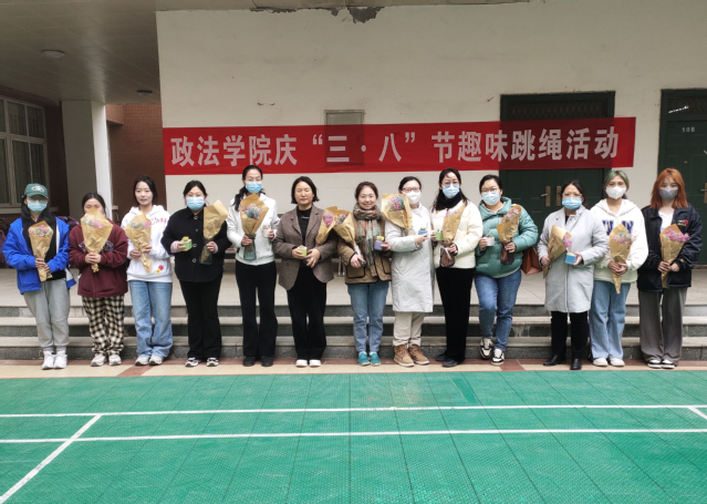 为庆祝“三•八”妇女节,丰富女教职工业余文化生活,展现女教职工蓬勃向上、积极进取的精神风貌,3月23日下午,政法学院工会在政法楼北广场举办了2023年庆“三•八”节女教职工趣味跳绳活动。