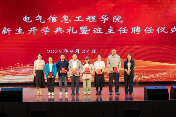 学院党委副书记刘振卫宣读《电气信息工程学院关于聘任栗三一等8名同志担任2025级学生班主任的决定》,张辉书记、和萍院长为新生班主任颁发聘书。
