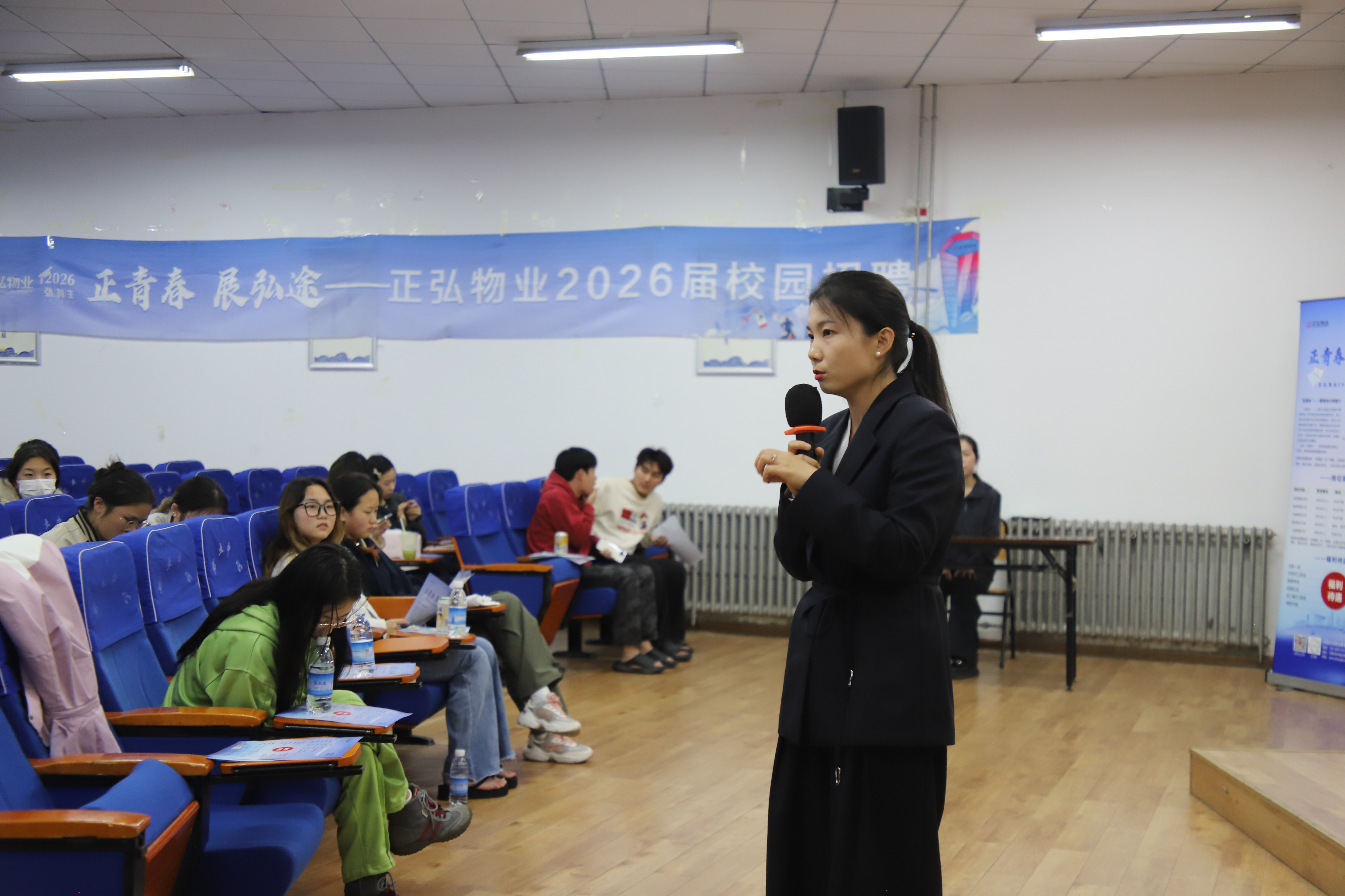 为搭建物业校企人才供需对接桥梁、促进2026届毕业生高质量充分就业,近日,正弘物业校招宣讲会在活动中心楼113成功举办,政法学院2026届毕业生及其他相关专业毕业班学生积极参会。