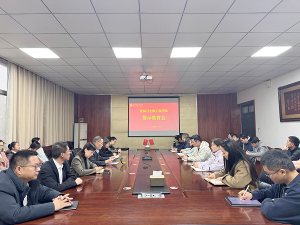 为持续巩固拓展党纪学习教育、深入贯彻中央八项规定精神学习教育成果,11月6日下午,食品与生物工程学院在食工楼211会议室组织召开警示教育会。学院领导班子成员及科级干部参加会议,会议由学院党委书记张阳主持。