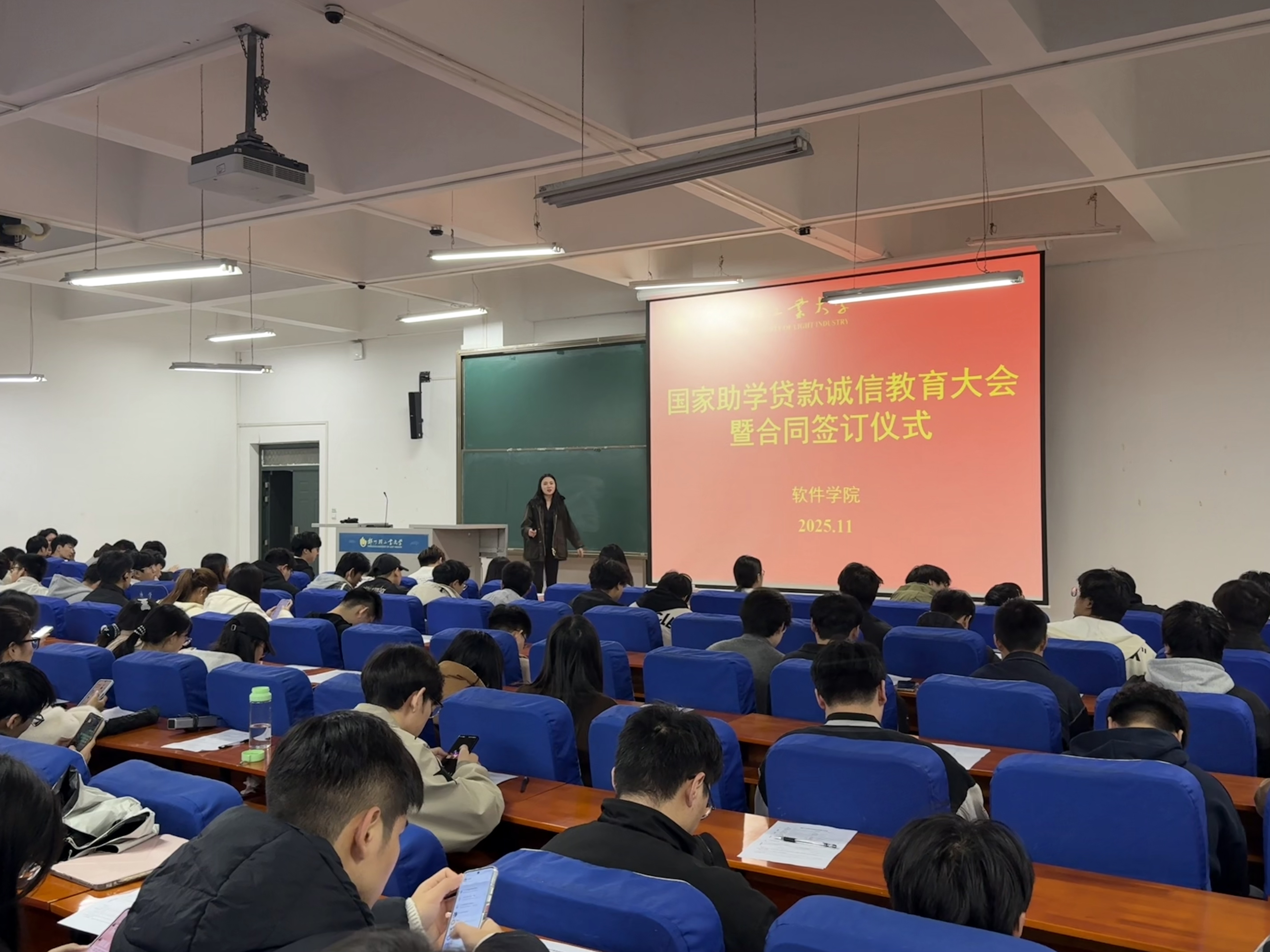 为确保国家助学贷款政策精准落地,2025年11月6日中午,软件学院在软件楼219举行2025年度国家高校助学贷款诚信教育大会暨合同签订仪式。全院申请助学贷款的同学参加本次会议。
