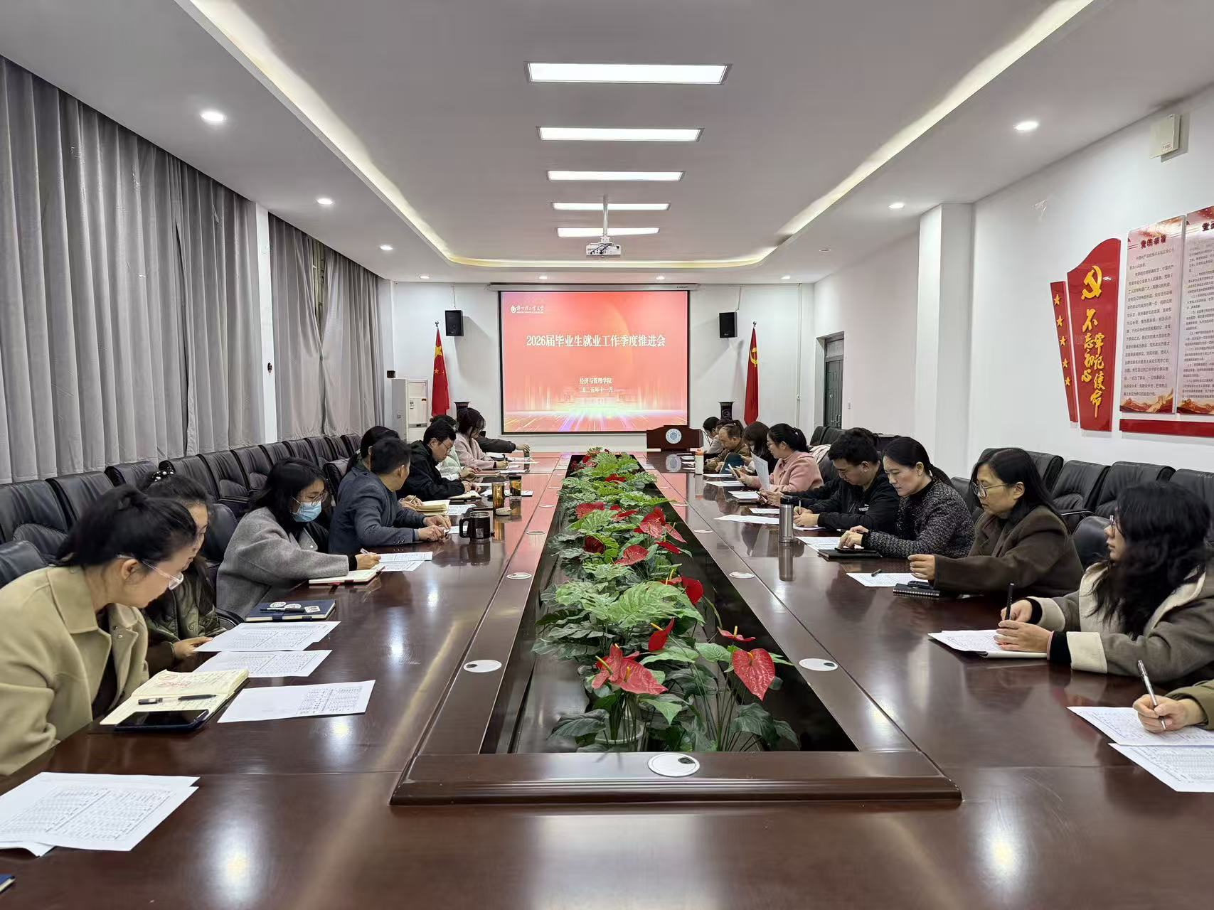 会上,陈章美分析了当前复杂严峻的就业形势,详细通报学院2025届、2026届毕业生就业工作进展情况,并对下一阶段就业工作提出了具体要求:严格压实四级联动责任制,确保责任到人、任务落地;加强分类指导,针对学生就业意向,开展精准化、个性化的就业服务;落实毕业生签约情况跟踪机制,动态掌握就业进展,促进毕业生好就业、就好业。