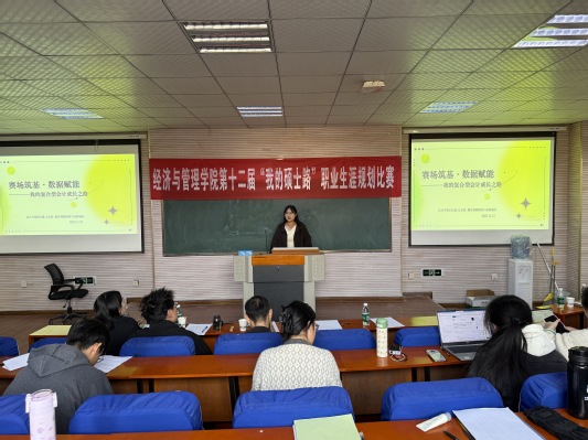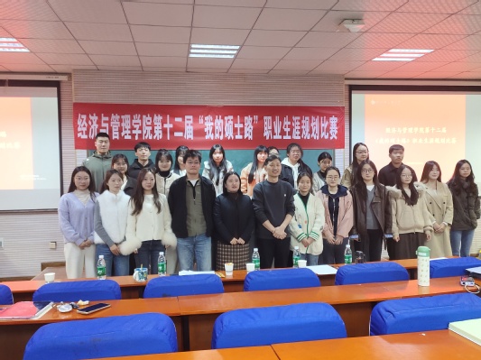 为助力2025级研究生更好地适应研究生生活,做好学业与职业规划,经济与管理学院于11月13日下午在经管楼311教室成功举办第十二届“我的硕士路”职业生涯规划比赛。研究生导师张省教授、研究生导师周福礼教授、MBA、MPAcc教育中心副主任彭青秀教授、MBA、MPAcc教育中心教学管理部主任冯攀攀老师、研究生管理办公室主任崔亚娟老师及全体2025级研究生齐聚一堂,共同参与了此次活动。