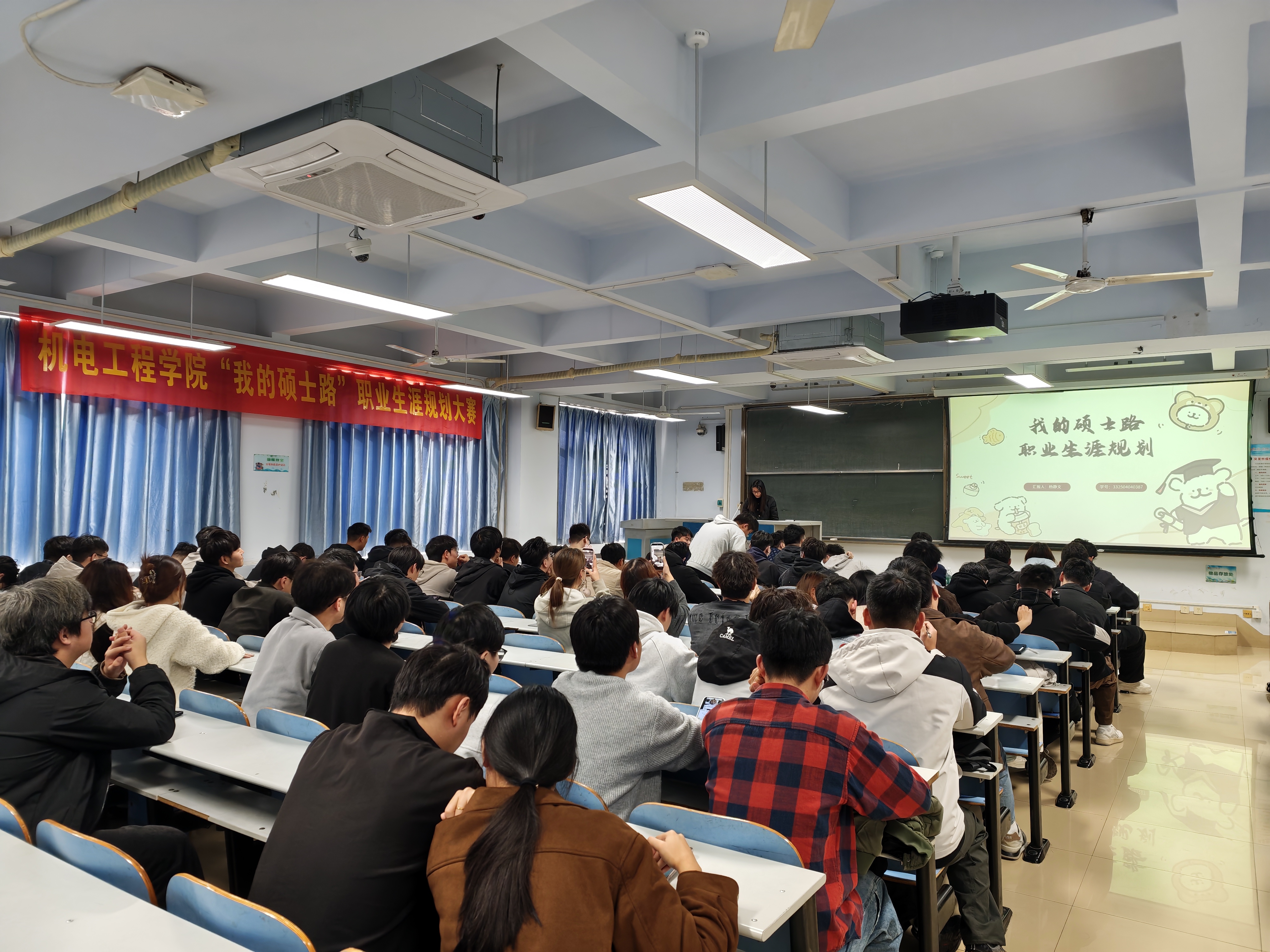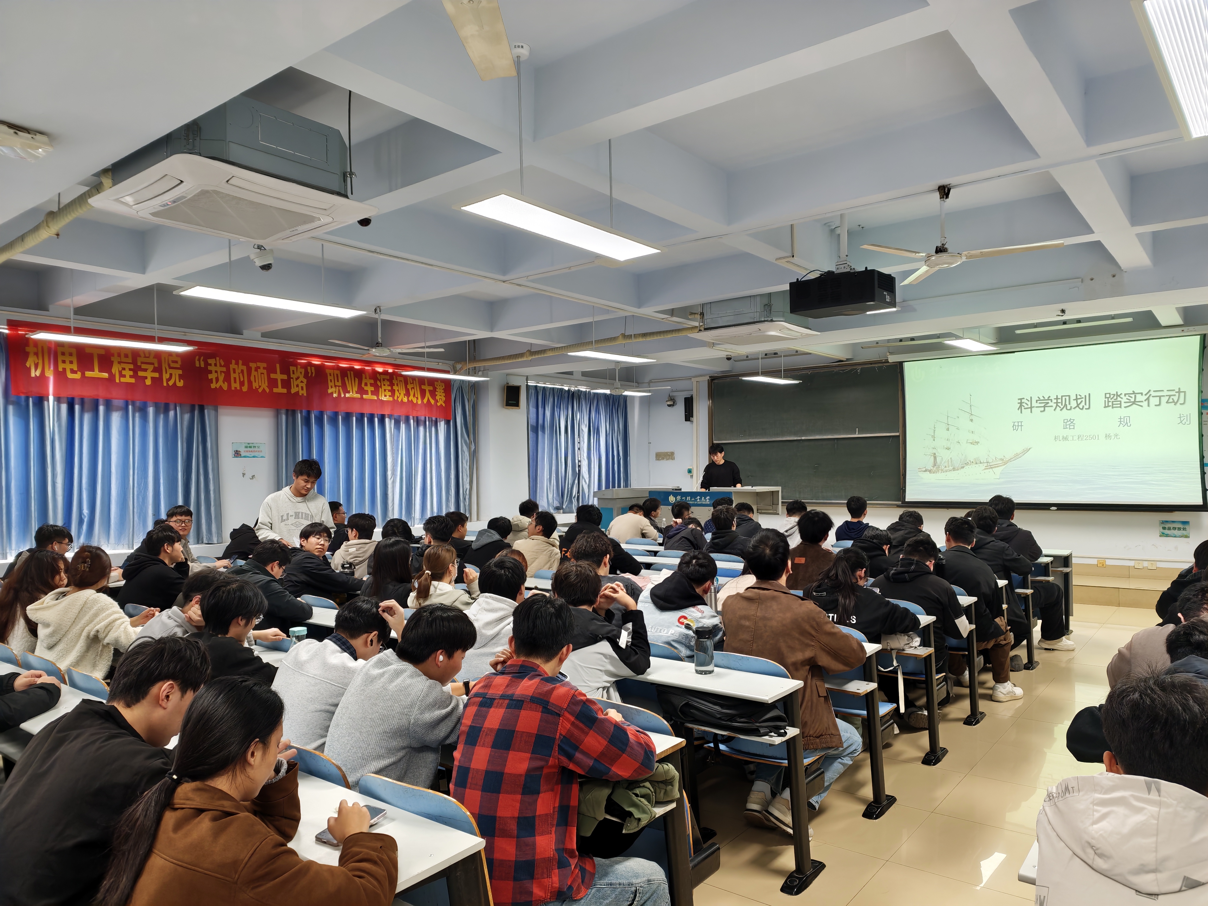 11月13日,机电工程学院在教三楼608举办“我的硕士路”职业生涯规划演讲比赛暨学业发展分享交流会。学院2025级全体研究生、研究生会骨干、国家奖学金获得者以及研究生辅导员吕志斌老师参加此次活动。