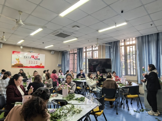 舞蹈教室里,教职工们伴随着悠扬旋律调整姿态、练习舞步;插花班中,大家在花艺师的指导下修剪花材、搭配色彩,将一束束花材悉心雕琢成错落有致的艺术品;中华茶文化课堂上,从茶的起源到冲泡技艺,大家执壶品茗,感受中华美学的雅致韵味;创意布包缝制班里,针线引巧思,大家在经纬间将素朴布料缝制成独具特色的手工作品;网球场上,教练耐心讲解、细致纠正动作,学员在奔跑挥拍中释放压力,尽享运动乐趣。