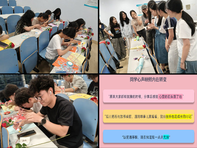 本届“蒲公英心理素质提升项目”集中展现了心理健康与多领域的深度融合发展方向,活动项目以绘画、扎染、手作、团辅活动等为载体,以自我认知、团队合作、情感表达、积极心理培养等多维度心理提升为内核,在轻松愉悦的氛围中,润物无声助力学生身心健康成长。其中自我探索与成长类活动,如“心灵拼图-发现完整的自己”“情绪看得见·真实表达之旅”“心灵探秘之旅:从自我认知到团队融合”等项目通过聚焦个体对自我认知、情绪的觉察及个人成长,帮助同学们舒缓情绪,表达自我,对自身有更加完整的认识;团队合作类活动,如“同心同行,趣享时光”“挑战自我,凝聚团队”“同心拓新程,共感筑新桥”等项目通过团体的合作和互动,帮助学生促进人际间的理解,协作与支持,从而在集体中感受到自我的价值和集体合作的魅力。创意表达心灵疗愈类活动“顽石生花,纸影流光”“心灵漂流瓶”“情绪疗愈,指间叶语”“轻拾情绪星屑,细织心灵微光”等项目以新颖的形式引发思考,通过创意互动传递温暖、疗愈心灵。积极心理培养类活动,如“21天感恩打卡计划”“心向暖阳,悦享成长”“指尖生花寄温情,创意手作暖寒冬”“心语绽放·蒲公英成长计划”等以打卡、长期计划、送温暖等方式,培养感恩、关爱他人、积极成长等心理习惯,持续推动正向心理素质发展。