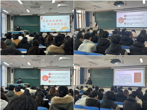活动伊始,各团支书以“宪法发展与时代使命”为脉络,带领大家梳理了1954年首部宪法到新时代宪法修正案的演进历程,并结合习近平总书记关于全面依法治国的重要论述,阐释宪法作为根本大法在保障人民权益、规范国家治理中的核心作用,让同学们直观感知到宪法精神与人民日常生活的紧密关联。随后,各团支部组织观看了法治教育专题视频,以鲜活案例展现中国特色社会主义制度的实践优势,进一步强化了青年学子的政治认同与思想自觉。
