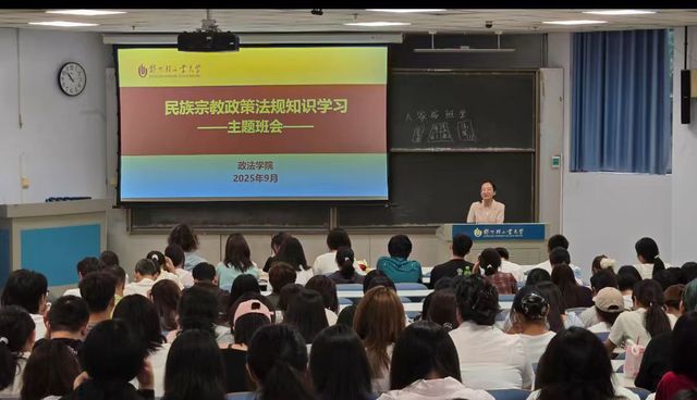 为深入贯彻落实习近平总书记关于民族宗教工作的重要指示精神,进一步铸牢中华民族共同体意识,9月4日,政法学院为2025级新生开展“民族宗教政策法规知识学习和反邪教宣传教育”主题团课暨主题班会活动。