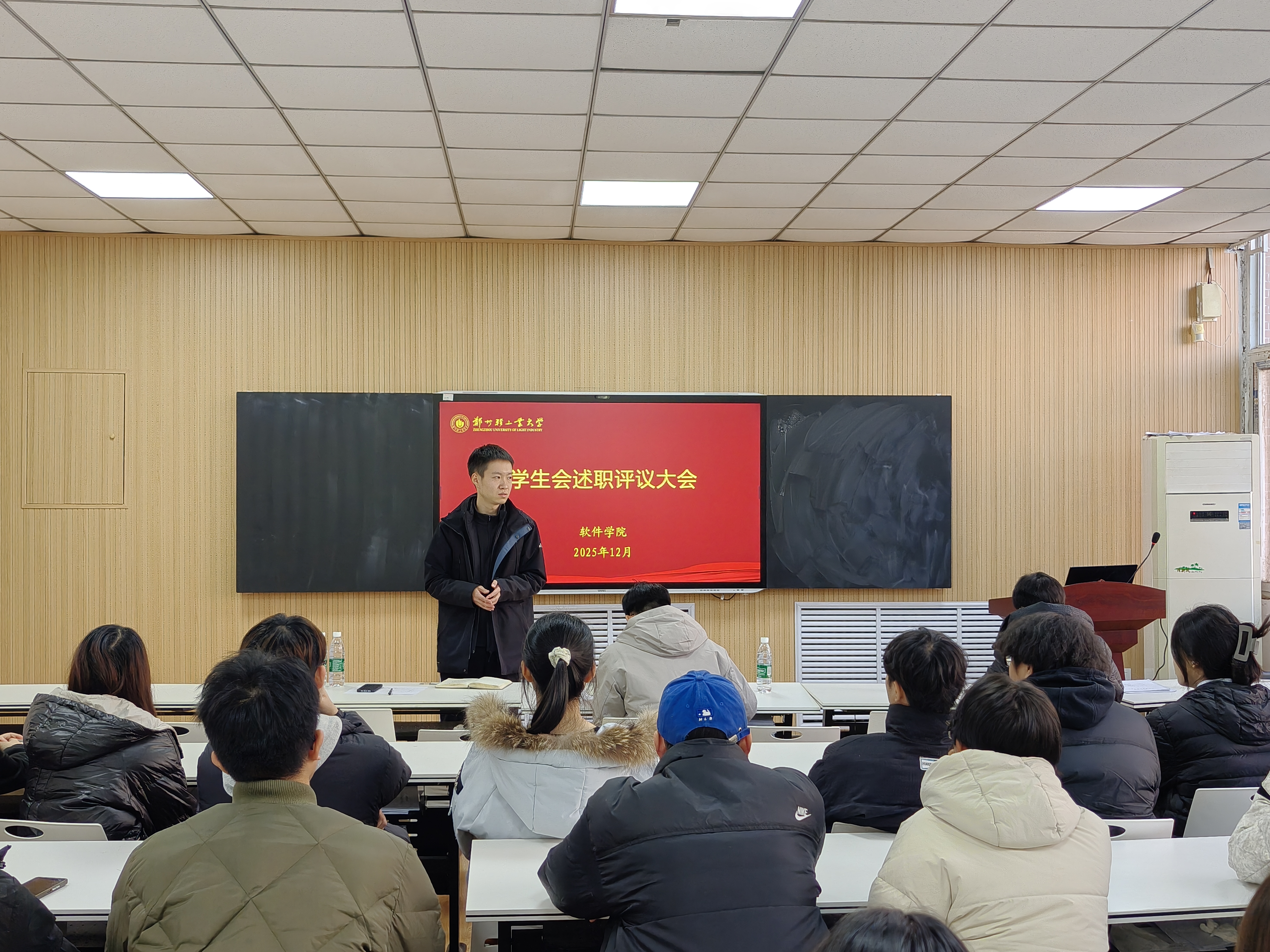 为贯彻落实《关于巩固高校学生会(研究生会)改革成果的若干措施》有关要求,进一步加强对学生会组织工作人员的监督和管理,提升学生会工作人员服务能力和水平,12月16日中午软件学院在软件楼112开展学生会工作人员述职评议大会。学院团委书记刘智文、校学生会代表、软件学院学生会工作人员以及各班级学生代表参与本次会议。