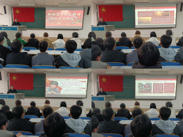 活动伊始,各团支部书记通过PPT,结合当今国内外形势,阐述了爱国主义的精神内涵,让同学们深刻认识到国家富强、民族振兴与自身紧密相连,增强了同学们的国家认同感。然后,团支书带领同学们一起观看了与爱国主义相关的红色影片,电影结束后,同学们踊跃发表自己的观影体验,表达了对革命先烈的崇高敬意。随后,团支书向同学们介绍英雄先烈的事迹,跨越古今的仁人志士,用赤诚与坚守诠释深厚家国情怀,谱写着爱国主义的伟大篇章。这些鲜活的事例,让同学们真切感悟到爱国精神的时代价值。最后,团支书提出“如何在新时代青年心中厚植家国情怀”的问题,同学们积极讨论,结合自身经历与当今社会的认知,畅所欲言,发表自己的看法,积极为推动爱国主义精神在青年心中扎根建言献策。