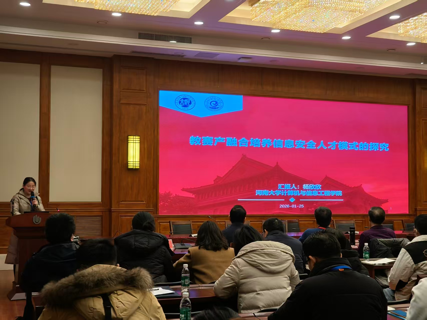 周立明副校长致欢迎辞,对与会嘉宾的到来表示诚挚欢迎,并介绍了学校在信息安全领域的学科建设与人才培养成果。河南省高等学校计算机教育研究会领导发表致辞,强调了信息安全人才培养对数字河南建设的重要支撑作用,肯定了本次研讨会在推动高校学科竞赛与教学改革融合中的积极意义。北京理工大学罗森林教授带来了题为“信息安全与对抗竞赛(ISCC)理念、机制、模式、方法研讨”的专题讲座。罗森林教授作为ISCC大赛的创始人,深度解读了赛事“以赛促学、以赛促教、以赛促创”的核心理念,分享了赛事在机制设计、模式创新与实践方法上的探索经验,并结合历年赛事案例,剖析了学科竞赛对信息安全人才核心能力培养的推动作用。讲座内容深入浅出、案例丰富,引发了现场嘉宾的强烈共鸣。河南大学等高校代表围绕 “教赛产融合培养信息安全人才模式”展开经验分享,各高校结合自身实践,从课程体系改革、竞赛梯队建设、校企协同育人等维度进行了深入交流,为信息安全人才培养模式创新提供了多元思路。在研讨交流环节,与会嘉宾就学科竞赛与专业教学的深度融合、高校与企业的协同育人机制等议题展开热烈讨论,碰撞出诸多思想火花。中国兵工学会安玉德副秘书长作总结讲话,高度评价了本次研讨会的成果,强调信息安全人才培养是筑牢网络安全防线的关键,希望以本次会议为契机,进一步凝聚省内高校与企业的合力,持续深化教赛产融合,为河南省乃至全国培养更多高素质信息安全专业人才。