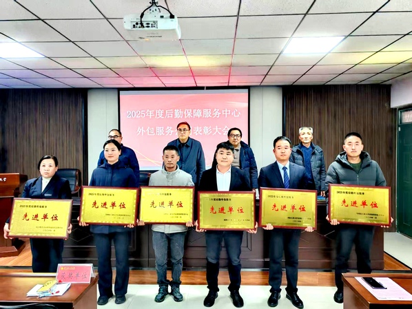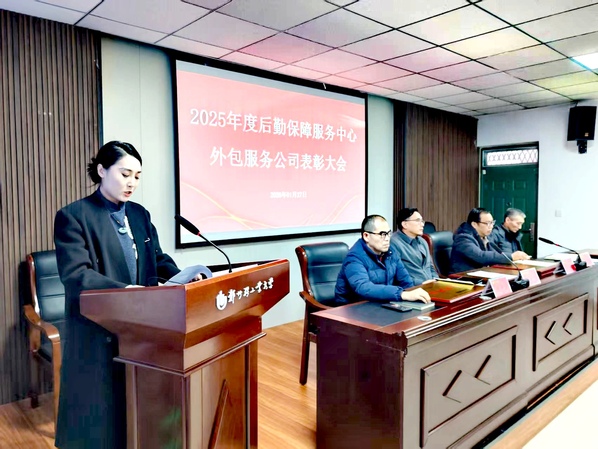 1月27日下午,后勤保障服务中心召开2025年度外包服务公司表彰大会,中心领导班子、各科室科长、外包公司副总以上人员及驻场经理参加会议,中心副主任郭祥远主持会议。