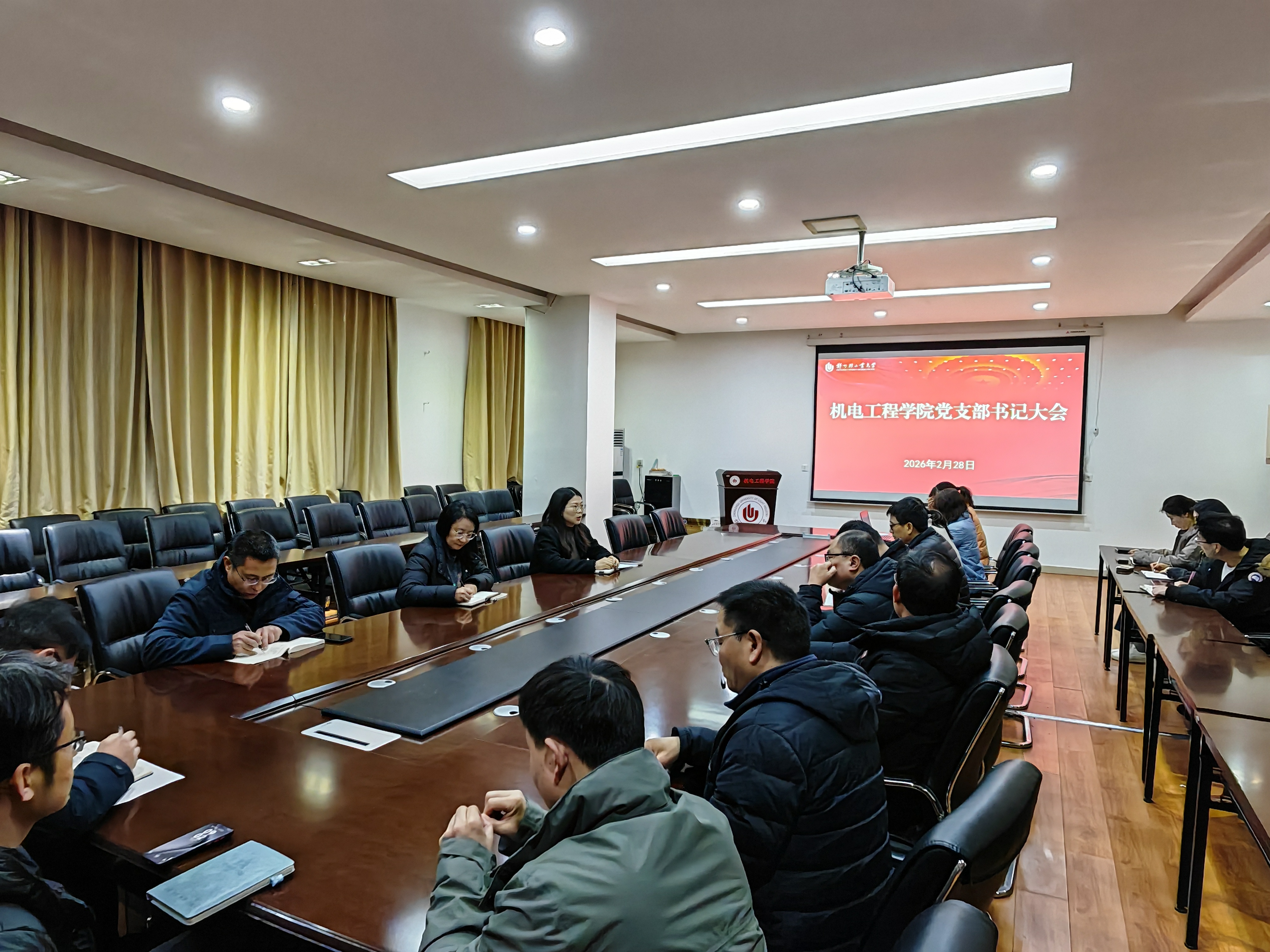 2月28日上午,机电工程学院在西三楼215会议室召开党支部书记大会暨党务工作能力提升专题培训会,学院党委书记万慧杰、党委副书记马宇、全体党支部书记及辅导员参加。会议由学院党委书记万慧杰主持。