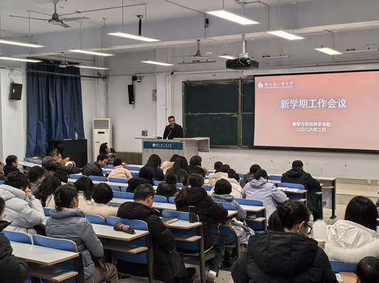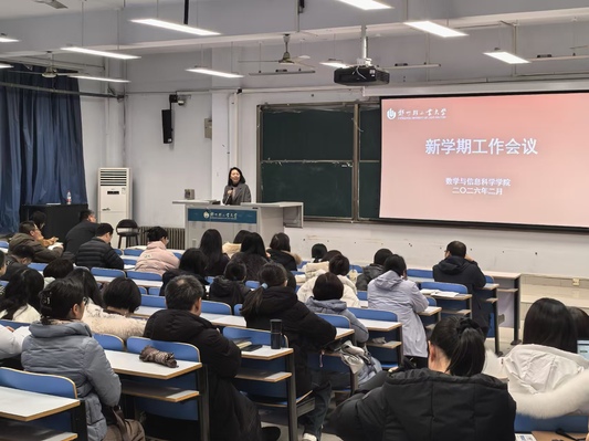 2月28日下午,数学与信息科学学院在东一楼218教室召开新学期工作会议,深入学习贯彻学校2026年工作会议精神,全面部署新学期重点工作。学院全体领导班子成员、全体教职工参加会议。会议由学院党委书记孔祥娟主持。