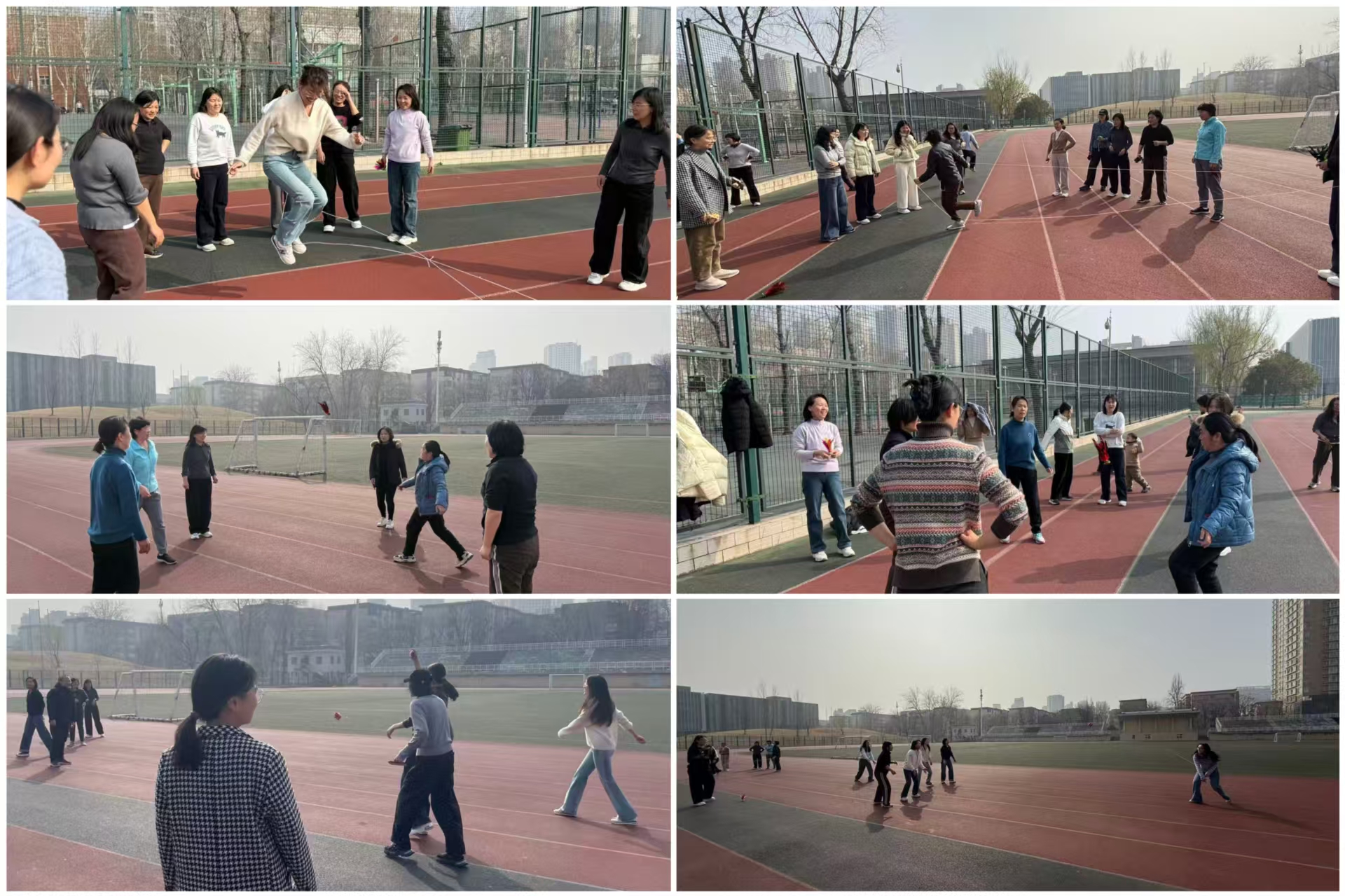 本次活动以重温童年趣味、舒缓工作压力为初衷,设置集体跳皮筋、个人踢毽子挑战赛、团体丢沙包对抗赛等经典环节。活动伊始,集体跳皮筋伴着经典口诀拉开帷幕,瞬间唤醒大家的童年记忆;踢毽子比赛中,老师们身手灵动,尽显活力;丢沙包对抗赛里,各队伍默契配合、齐心协力,操场之上加油声、欢笑声不断,节日氛围浓厚。