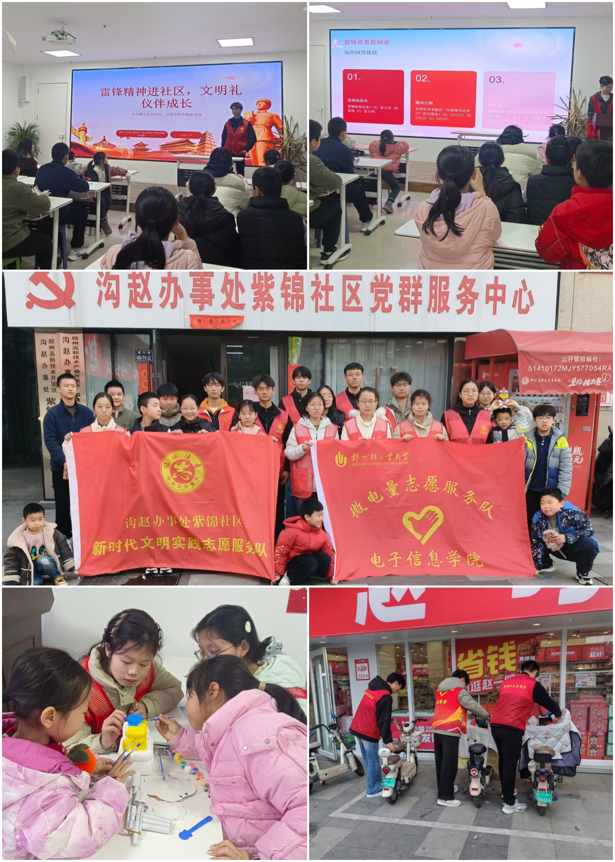 为传承和弘扬雷锋精神,3月8日上午,电子信息学院、集成电路学院“微电量”志愿服务队走进沟赵办事处紫锦社区开展“雷锋精神进社区,文明礼仪伴成长”志愿服务活动。