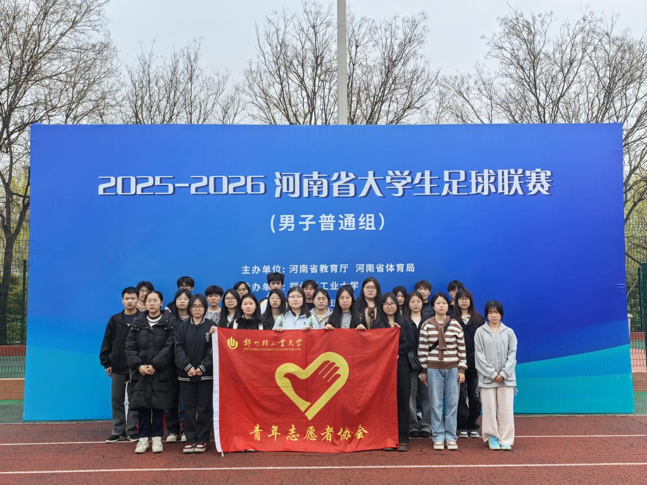 2026年3月19日至23日,由河南省教育厅、河南省体育局主办的2025—2026河南省大学生足球联赛(男子普通组)在我校科学校区足球场举行。为保障赛事顺利开展,学校组织50余名来自科学校区青年志愿者协会、足球爱好者协会的志愿者参与赛事服务,承担看台秩序维护、观众引导及赛后场地清洁等工作,以青春行动践行志愿服务精神,彰显我校学子的责任与担当。