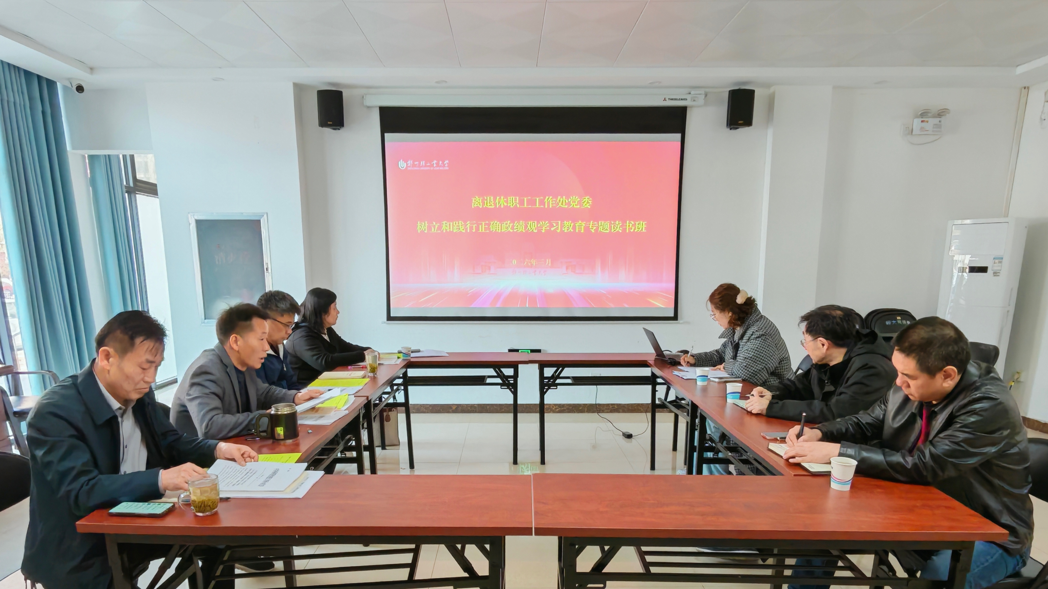 为深入贯彻落实党中央统一部署和学校党委树立和践行正确政绩观学习教育工作专班通知要求,3月25日至26日,离退休职工工作处党委举办树立和践行正确政绩观学习教育专题读书班。本次读书班采用书记领学、集中自学与交流研讨相结合的方式进行。处领导班子成员、各科室负责人参加学习。