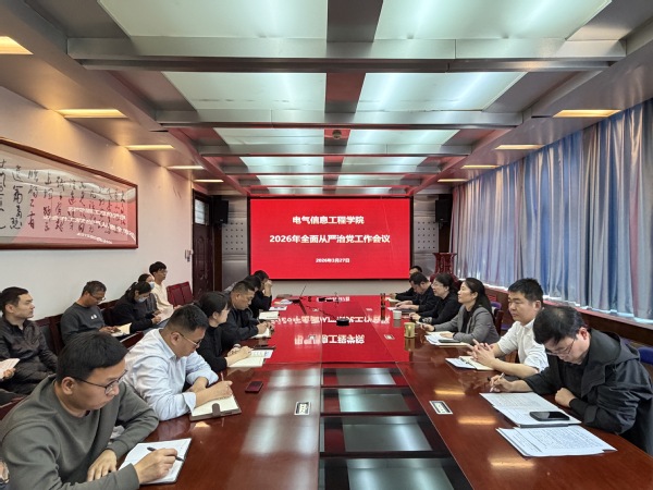 3月27日下午,电气信息工程学院在西二楼301召开2026年全面从严治党暨警示教育会。学院领导班子成员、科级以上干部、各党支部书记参加会议。会议由学院党委书记张辉主持。