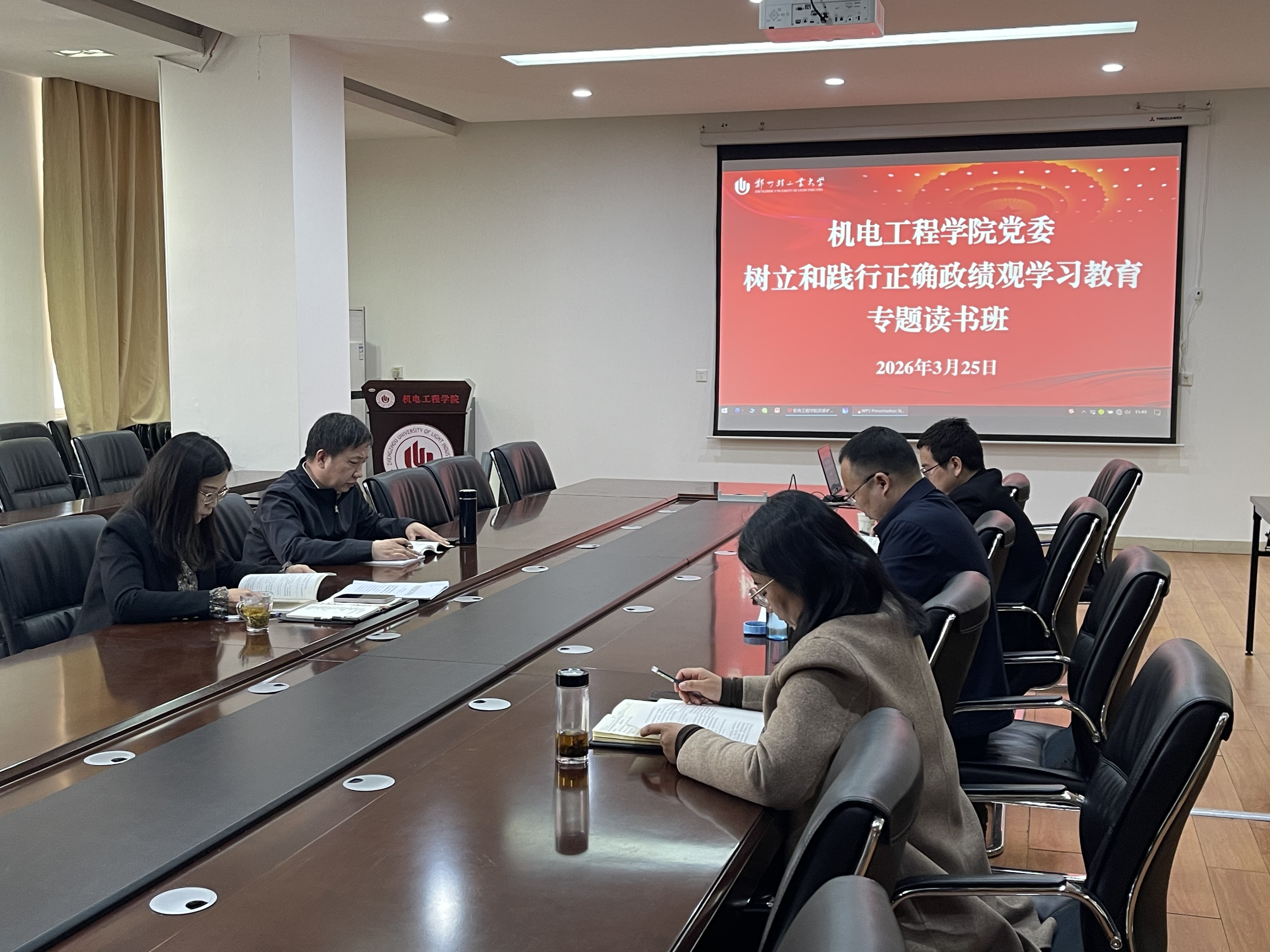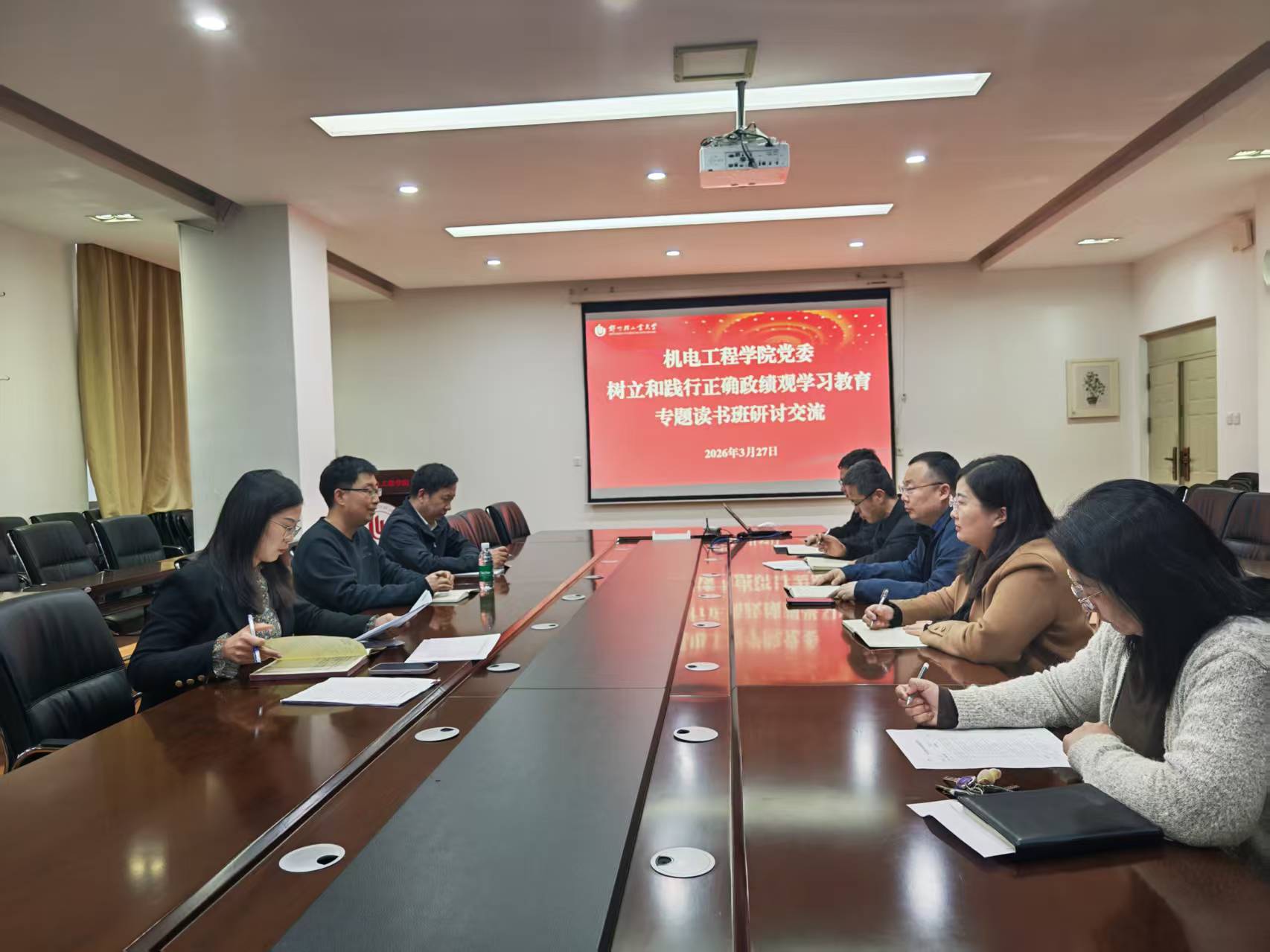 3月25日至27日,机电工程学院党委采取书记领学、集中自学和交流研讨相结合的方式,举办树立和践行正确政绩观学习教育专题读书班。学院领导班子成员、党委委员参加学习。