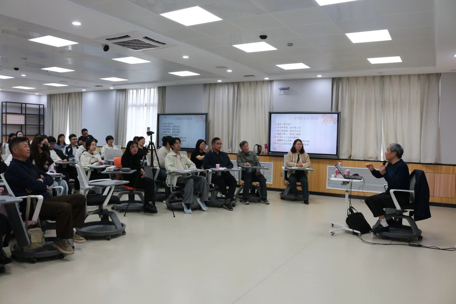 讲座最后,现场观众就吟诵与歌唱的区别、吟诵在当代教育行业发展现状及对教育发展的现实意义等问题向陈江风教授提问,现场交流氛围热烈而深入,网上互动频频。陈江风教授的讲座带领师生走进了吟诵的艺术世界,感受到中国传统读书法的独特魅力。