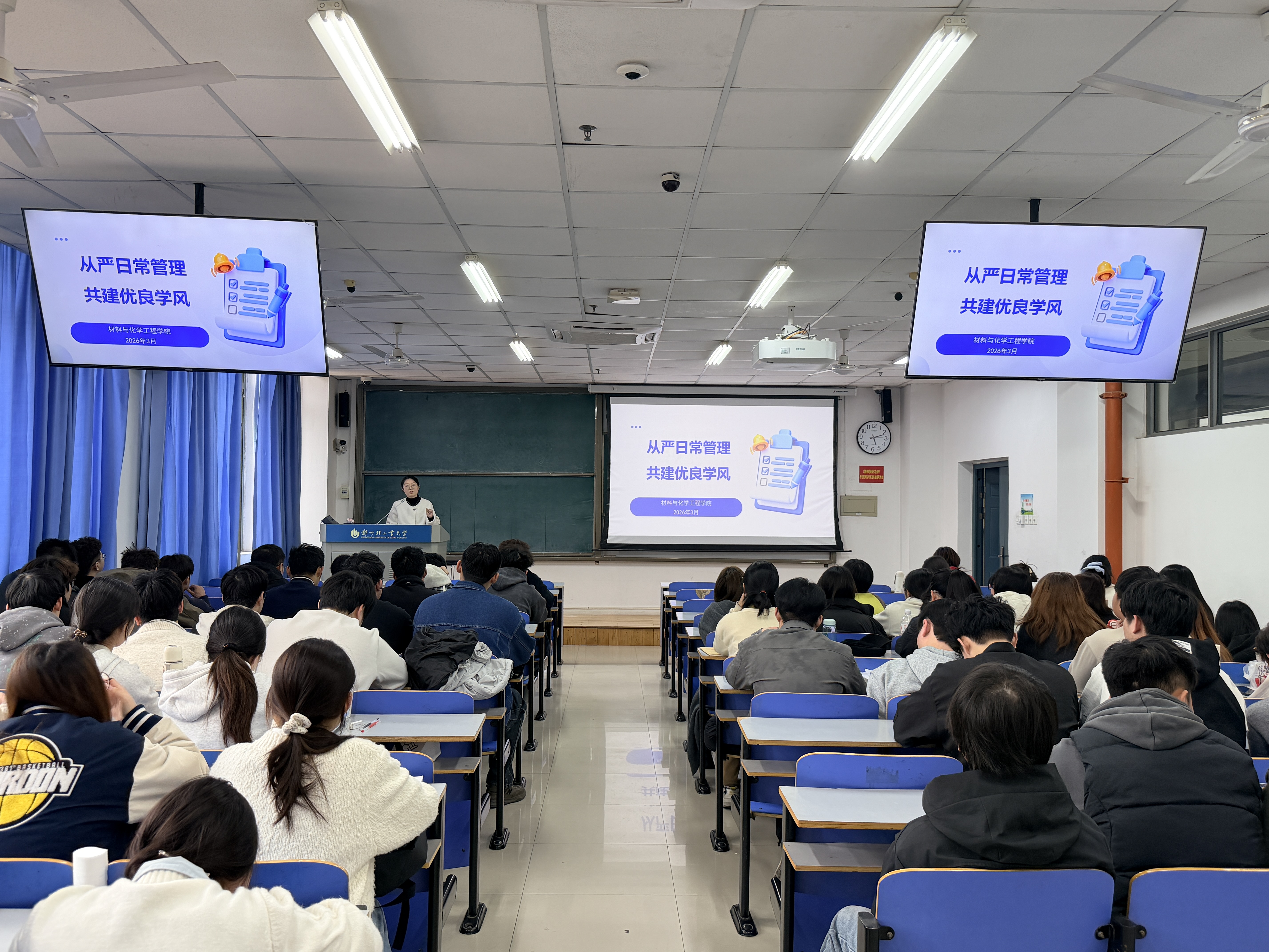 为深化学风建设,强化学生规则意识,凝聚班级发展正能量,近日,材料与化学工程学院学生工作组组织各年级班级,集中召开“正学风 聚能量”严格学生日常行为管理主题班会,切实将学风建设落到实处。