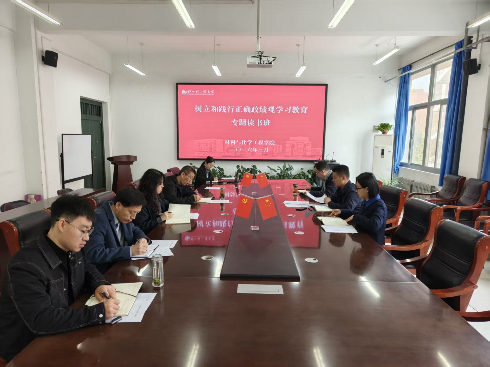 为深入贯彻落实学校党委关于开展树立和践行正确政绩观学习教育工作部署,3月26日至27日,材料与化学工程学院党委举办专题读书班,采取书记领学、集中自学、交流研讨相结合的方式,推动学习教育入脑入心、走深走实。学院党委委员、领导班子成员全程参加学习。