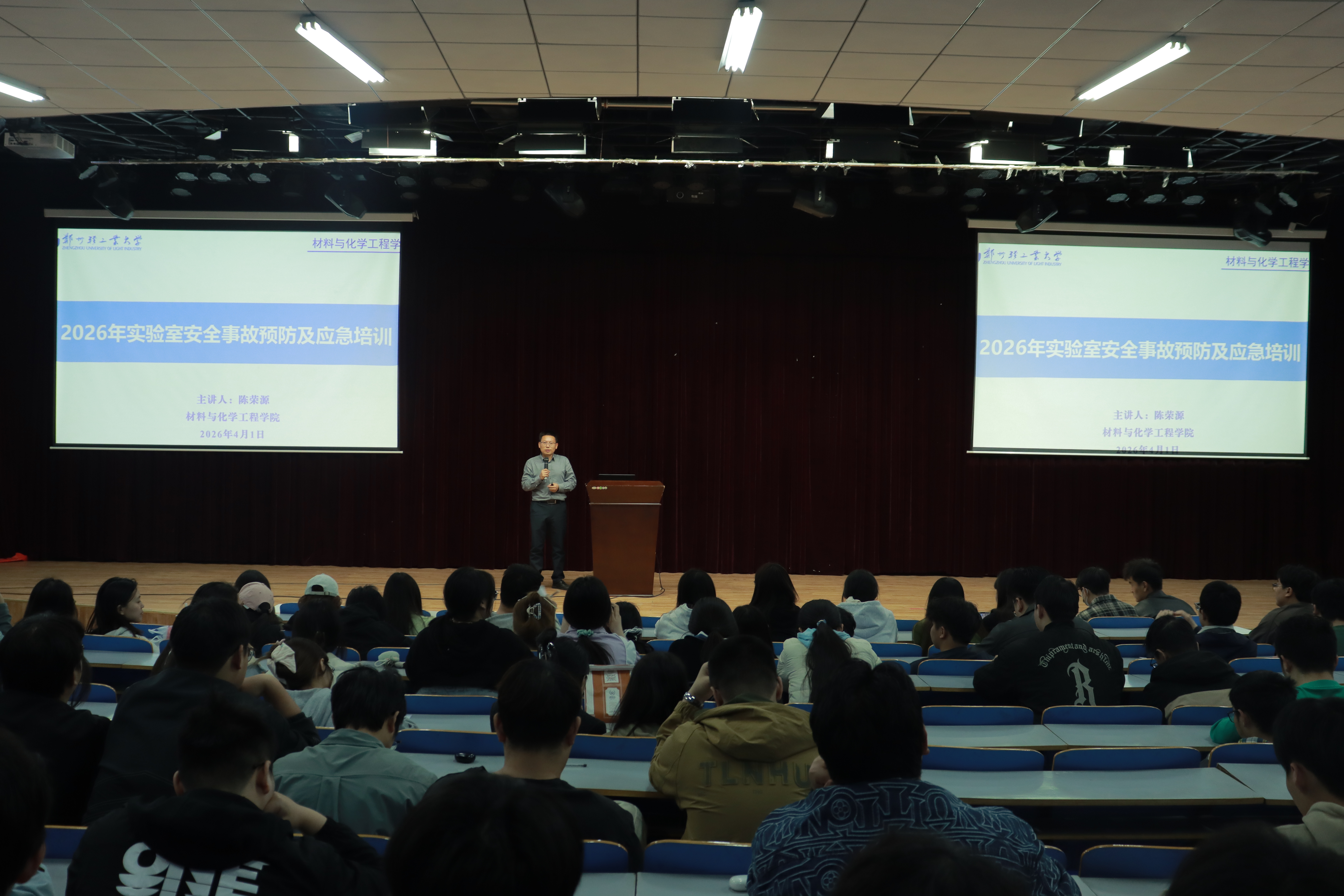 为落实教育部《关于加强高校实验室安全工作的通知》《河南省教育厅办公室转发教育部高等教育司关于加强高校实验室安全工作的通知》和学校实验室安全工作通知的精神和要求,4月1日下午,材料与化学工程学院组织师生进行了实验室安全事故预防及应急专题培训,学院全体2026届毕业班同学和研究生共计400余人参加,培训由学院实验实践教学中心主任陈荣源主讲。