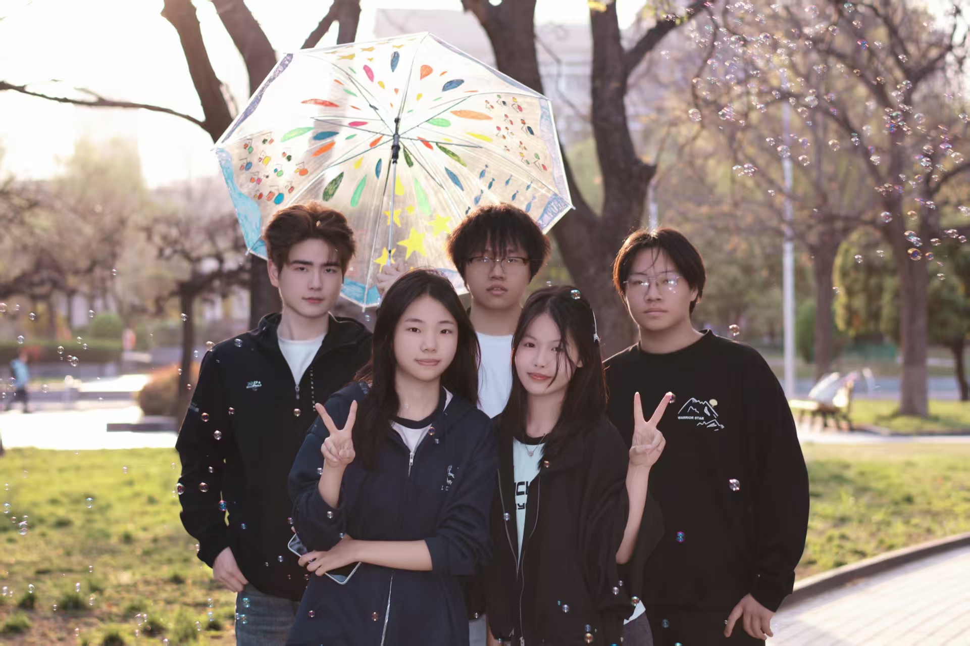 以伞为媒,共绘心晴。活动现场,同学们以透明雨伞为画布,围绕“希望、快乐、互助”等主题自由创作。各小组领取材料后,迅速投入专注而愉悦的绘制之中:有人描绘清新治愈的自然景致,有人书写温暖励志的寄语短句。画笔在伞面上轻灵游走,日常的学业压力悄然释放,彼此间的距离也在协作中不断拉近。艺术,成为自我表达与心灵相通的温柔桥梁,更让爱心在一次次笔触交汇中悄然传递。