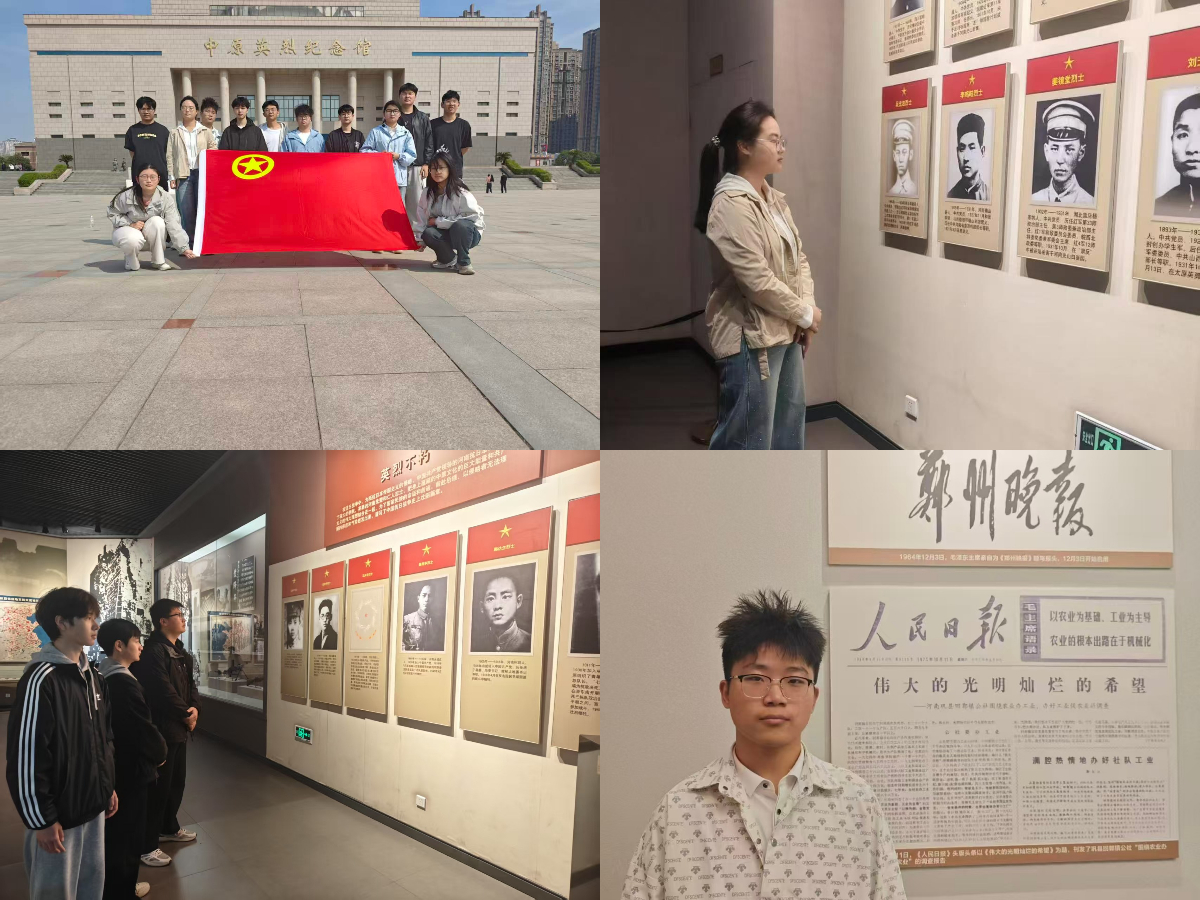 在肃穆的烈士陵园内,同学们整齐肃立于北伐阵亡将士纪念碑前,垂首默哀,依次敬献鲜花,以简朴而庄重的方式表达对革命先烈的无限追思与崇高敬意。祭扫仪式后,同学们走进中原英烈纪念馆,在讲解员的引导下参观馆藏革命文物与历史文献。锈迹斑斑的兵器、字迹模糊的书信、泛黄的老照片,将同学们带回烽火连天的岁月,让大家深切体悟到先辈们坚定的信仰追求与无私的奉献精神。除实地研学外,各团支部还创新活动形式,组织红色经典影片展播、“我家乡的英烈故事”分享会等活动,让红色教育更加生动可感。同学们在观影中重温峥嵘岁月,在讲述中传递信仰力量。
