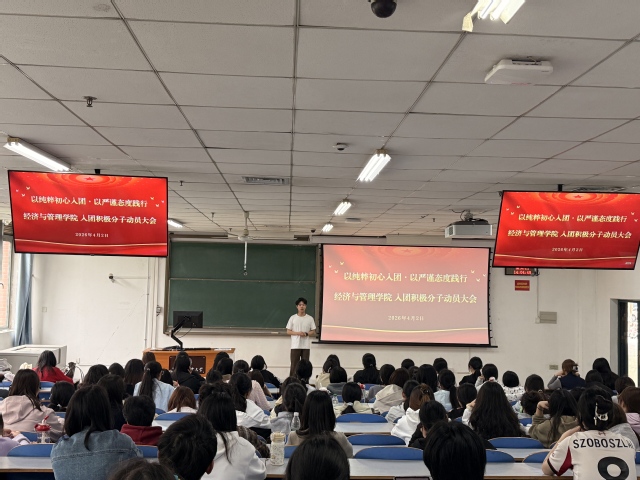 为深入学习贯彻习近平新时代中国特色社会主义思想和党的二十大精神,进一步提升入团积极分子政治理论素养,严把团员发展质量关,经济与管理学院于2026年4月2日在科学校区教三楼102室开展2026年上半年入团积极分子短期集中培训。