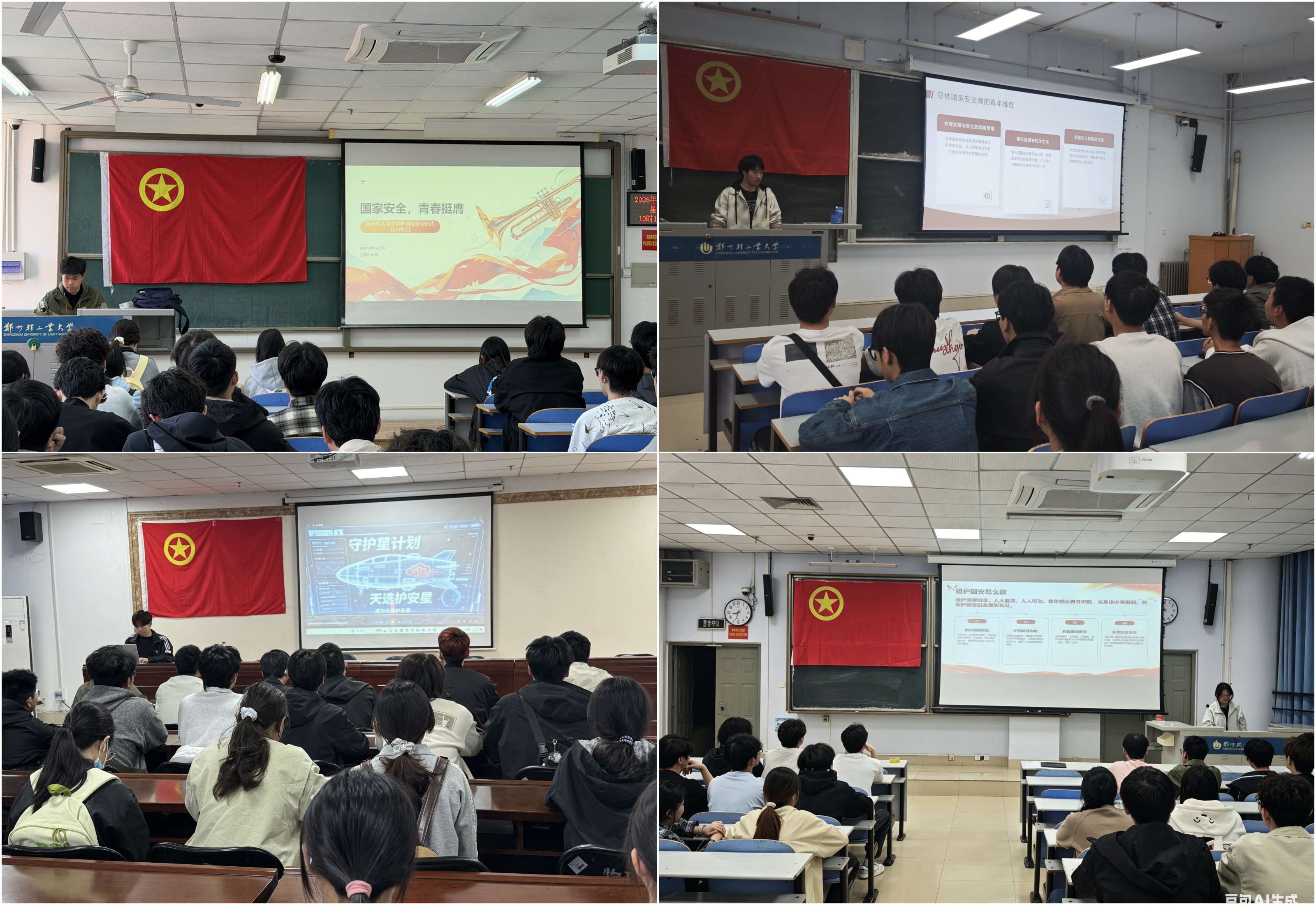 活动中,各支部通过主题宣讲、案例分享、知识问答、观看宣教片等形式,围绕政治安全、经济安全、网络安全、文化安全、社会安全等多个维度,系统讲解总体国家安全观的丰富内涵与重要意义,结合典型案例深入剖析新时代国家安全面临的新形势、新挑战,阐明青年学子在维护国家安全中的责任与担当,让同学们深刻认识到国家安全无小事,人人都是参与者、建设者、守护者。同学们积极交流感悟,分享学习心得,纷纷表示将时刻绷紧国家安全之弦,自觉抵制危害国家安全的言行,主动学习国家安全知识,以青春之我、挺膺担当,筑牢国家安全的青春防线。