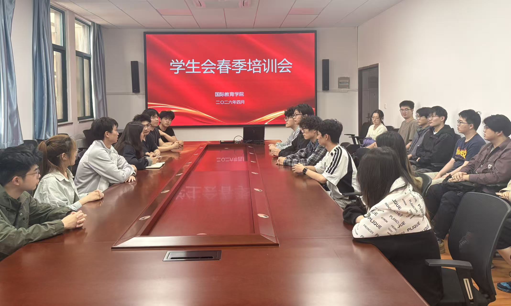 为进一步提升学生会工作人员的综合素养与服务能力,近日,国际教育学院在教二楼325会议室召开2025-2026学年学生会工作人员春季培训会。学院团委负责老师李珊珊、学生会各部门骨干成员及主要负责人参加会议。