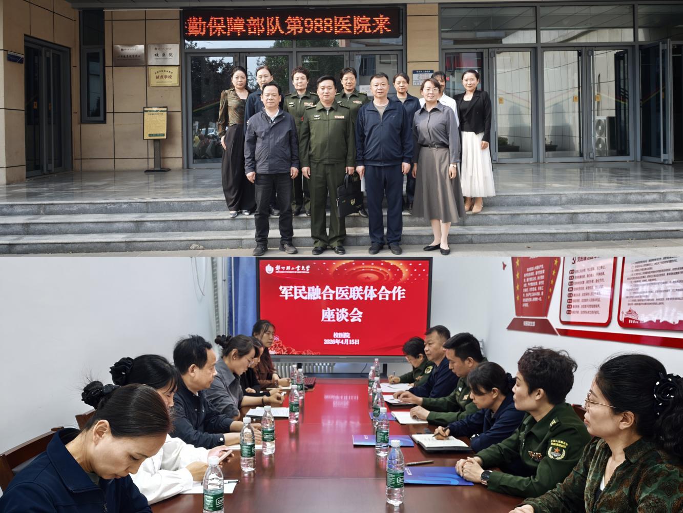 为深入贯彻国家军民融合发展战略,紧扣学校“十五五”规划医疗卫生部署,校医院主动谋划、积极推进科室优化与服务提质。近日,解放军联勤保障部队第988医院副院长孙振威带领外联办、医保科、信息科及口腔科相关负责人一行莅临我校,就深化军民融合共建合作开展座谈交流。校医院直属党支部书记张强、院长李文婷及相关科室负责人参加座谈。