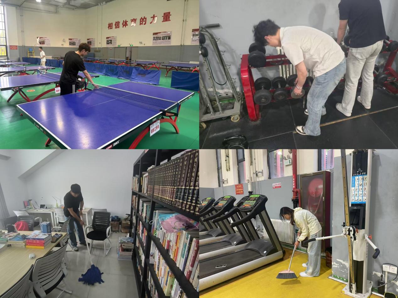 活动中,学院团员青年分工协作、积极行动,扎实开展多项校园劳动实践。同学们认真清扫考研教室,营造整洁安静的备考学习环境;全面整理打扫学生寝室,打造文明舒适的住宿空间;集中清理体育场馆公共区域,细致完成健身房器械擦拭、保养与维护工作,保障运动场地安全规范使用。