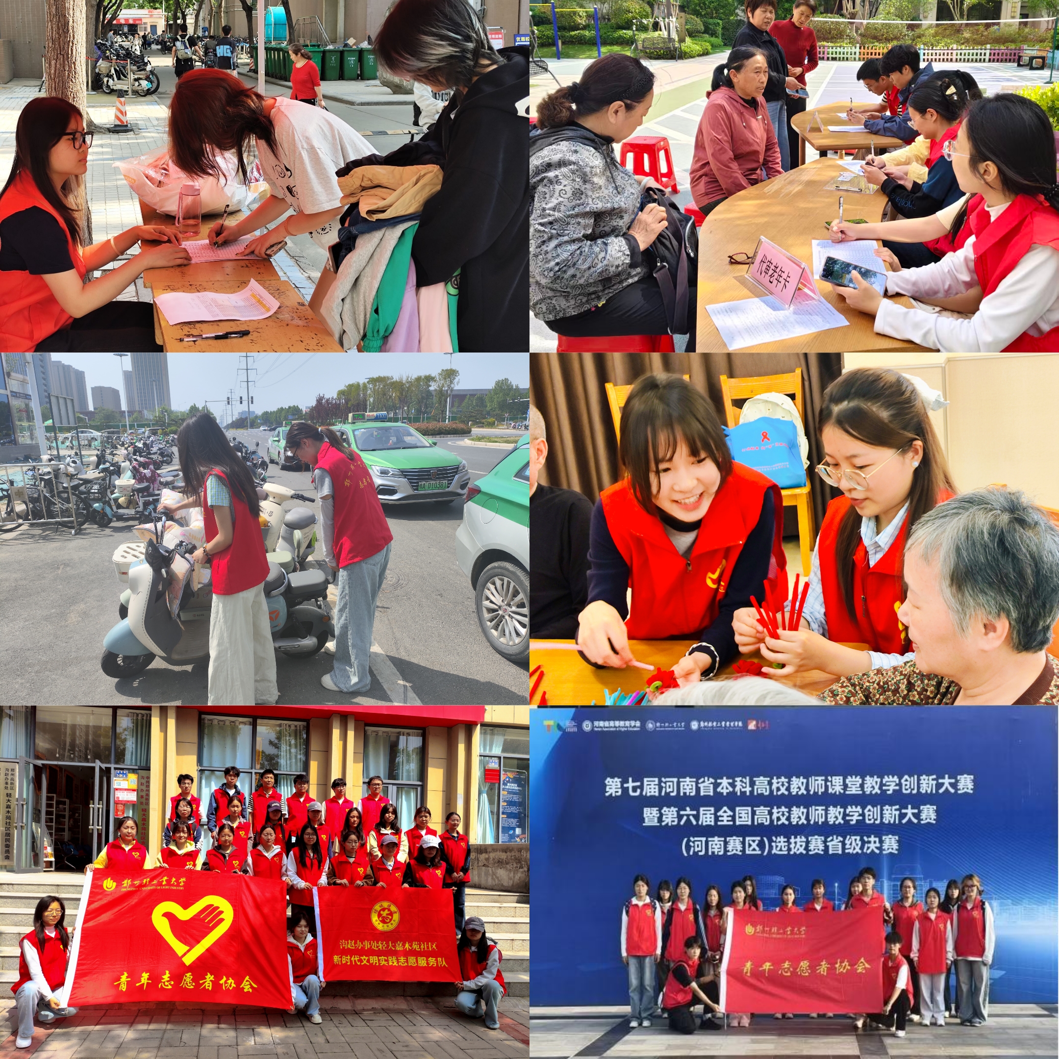本次活动聚焦校内与校外两大场景,打造了形式丰富、内容扎实的志愿服务矩阵。在校内,志愿者们发起了爱心捐衣捐物活动,并积极参与第七届河南省本科高校教师课堂教学创新大赛的志愿服务工作;在校外,志愿者们深入社区、养老院、地铁站,开展了老年卡审卡、敬老陪伴、地铁秩序维护等服务。