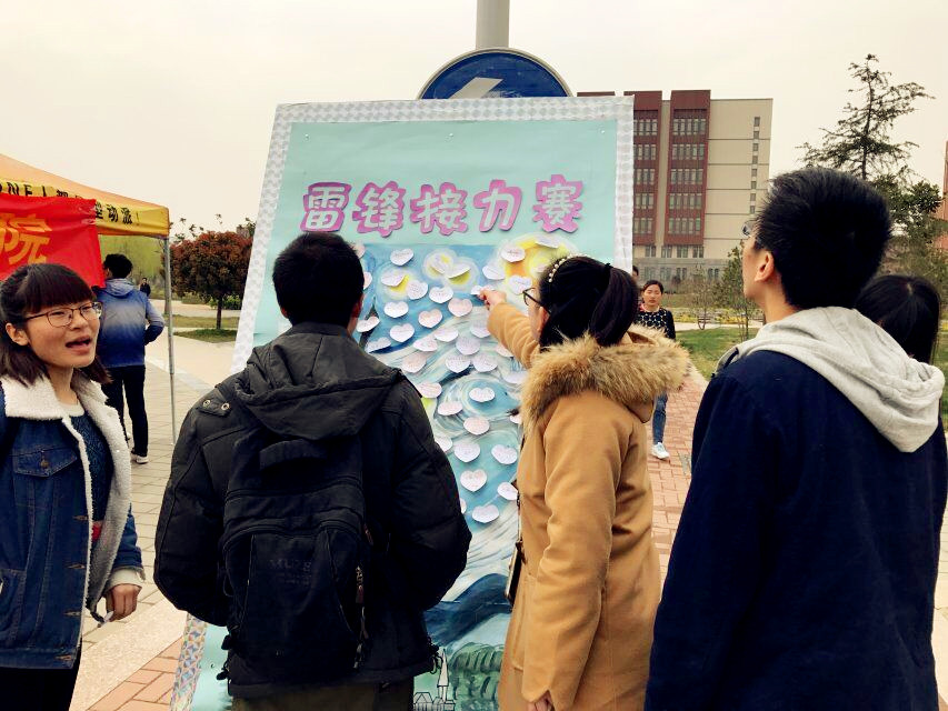 为了广大学生更好的传承并弘扬雷锋精神,以实际行动发扬奉献、友爱、互助、进步的时代新风。经济与管理学院特地举办了以“助力雷锋月,接力雷锋行 ”为主题的接力活动。活动于经管院北门空地开展,3月21日至3月27日活动持续7天。