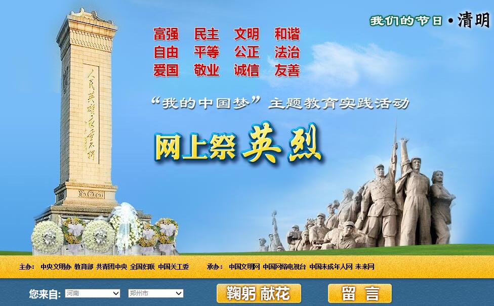 “清明时节雨纷纷,路上行人欲断魂。借问酒家何处有?牧童遥指杏花村。” 提起清明,人们自然会想起唐代诗人的这首诗。清明节是中国的传统节日,也是重要的祭祀节日。机电工程学院分团委积极响应校团委号召,组织广大教师和学生开展线上祭扫活动,通过我院官方微博、微信,以及登陆中国文明网“网上祭英烈”活动页面,向烈士鞠躬或敬献鲜花。同学们真挚的留言寄托对先烈深深的缅怀和敬慕之情。