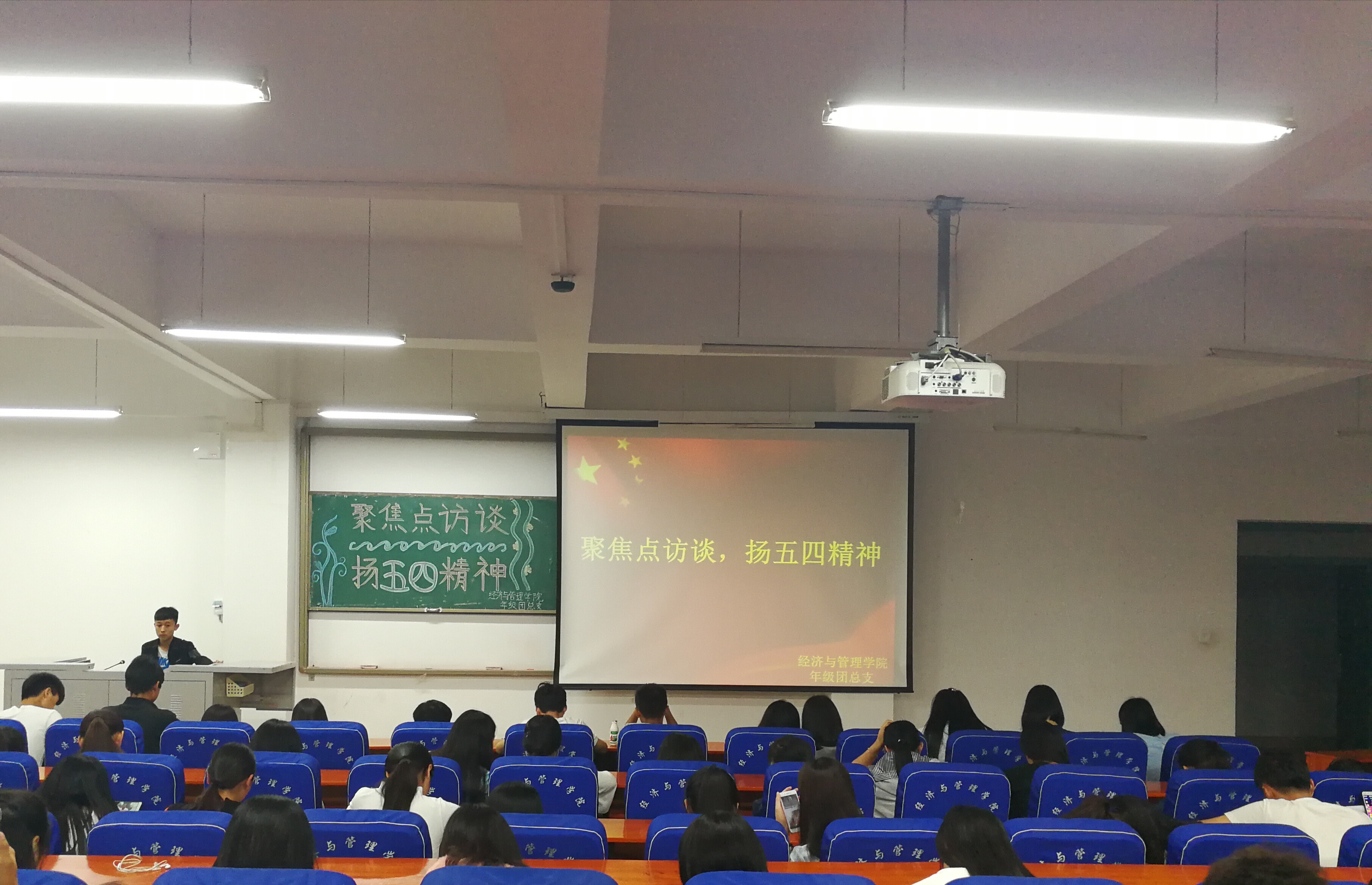 为纪念五四青年节,带动广大学生继承和弘扬五四精神,鼓励学生崇先尚优、关注时政,提高对文化产品的重视,增强当代大学生的责任感和使命感,经济与管理学院于5月4日19点30分在经管楼211举办了“聚时政热点,扬五四精神”主题活动,16级各班班级代表参加了此次活动。同时,组织全院同学观看共青团宣传报道,“青年榜样习近平”微视频,五四文化节目等。