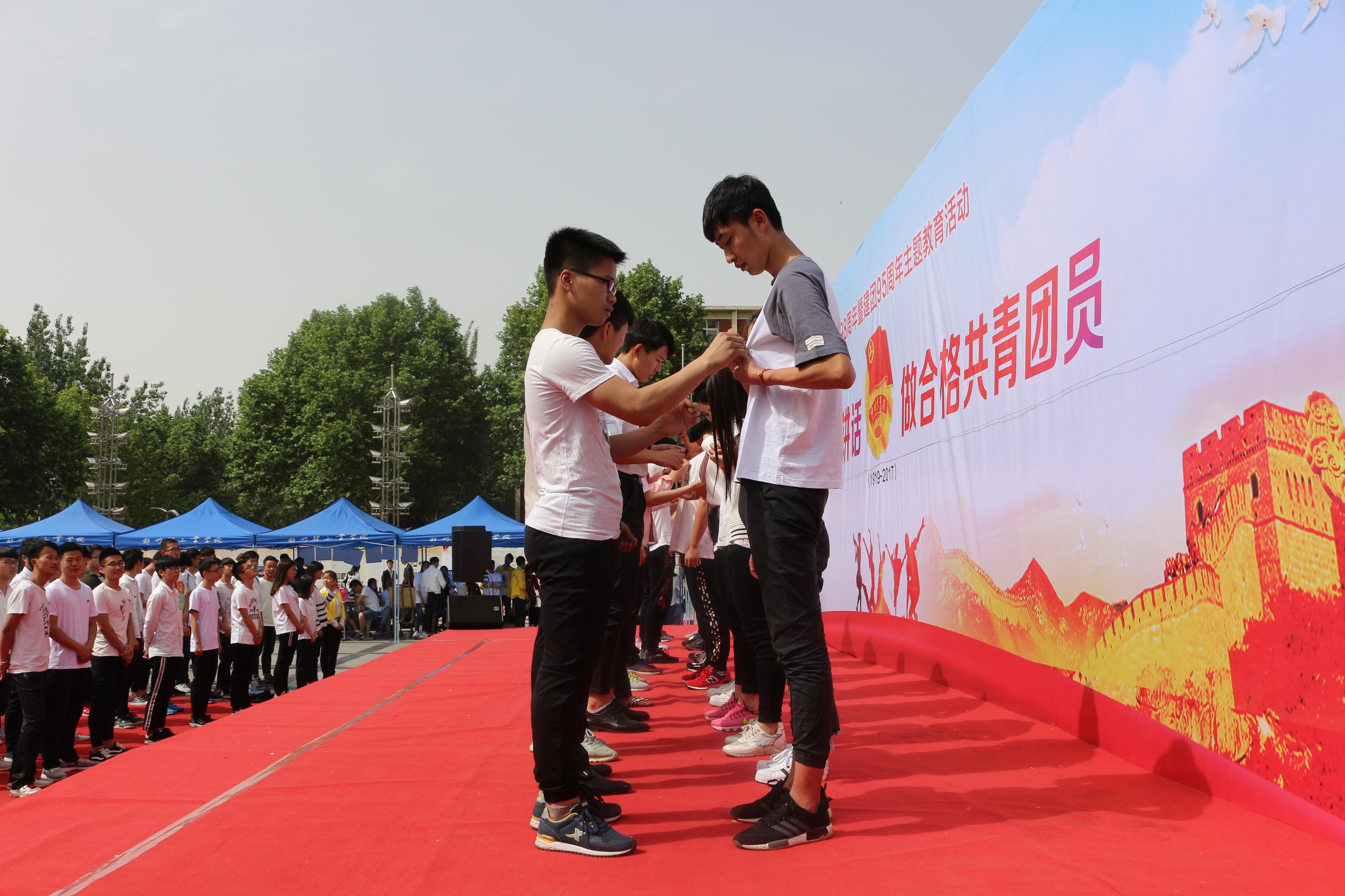 在庄严的国歌声中,此次活动拉开了序幕。陈璐老师宣读了2017年新入团的102名团员名单,老团员代表为每一位新团员佩戴团徽。随后,在新团员代表的带领下,新团员们面对着团旗,右手握拳,开始了庄严的宣誓:“我志愿加入中国共产主义青年团,坚决拥护中国共产党的领导...”。宣誓完毕后,新团员代表朱二涛谈了自己加入共青团的感受以及自己以后要承担的责任,表示新团员们以后要更加严格要求自己,时刻起到模范带头的作用。老团员代表周珮珊对新发展的团员表示欢迎,希望可以一起与新入团员一起共同努力,奉献自己微薄的力量。马宇老师代表团干对参加活动的团员青年们提出了要求,希望大家能够尽职尽责,艰苦奋斗,努力学习,崇尚科学,追求真知,为团旗增辉添彩,为早日成为国家栋梁之材而发奋图强。最后,在激昂的团歌声中,此次活动取得了圆满成功!