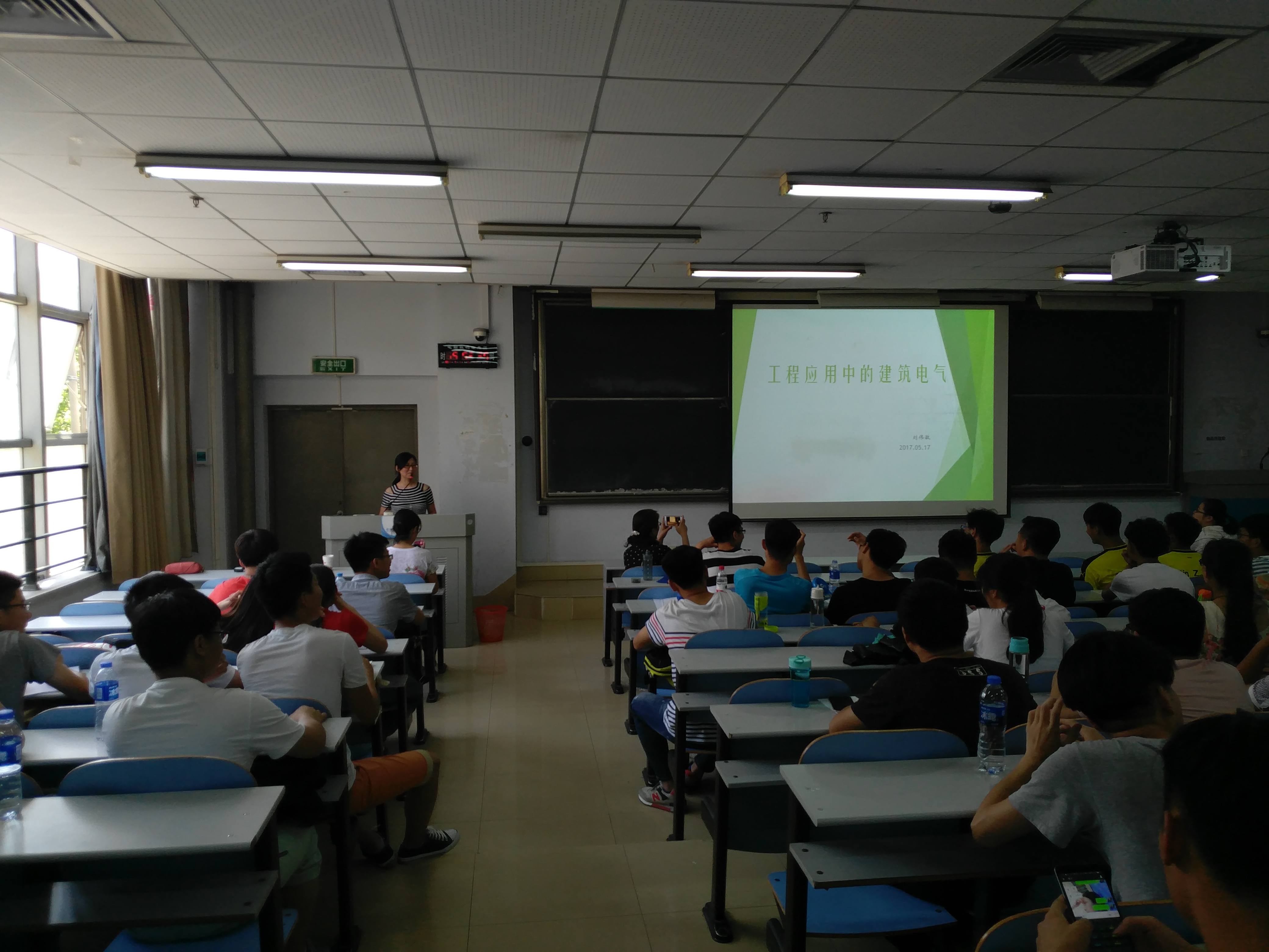 本次认识实习分为校内实习和校外实习两个环节。在校内实习环节中,由专业骨干教师分别做了《实习安全教育和实习单位介绍》、《建筑电气与智能化专业人才培养计划与专业学习》、《专业课程与创业就业》、《电气工程基础与用电安全》和《BIM技术应用》等讲座,河南新田置业有限公司电气总工刘伟敏在“他山之石可以攻玉”第22期专业论坛中做《工程应用中的建筑电气与智能化》专业学术报告。