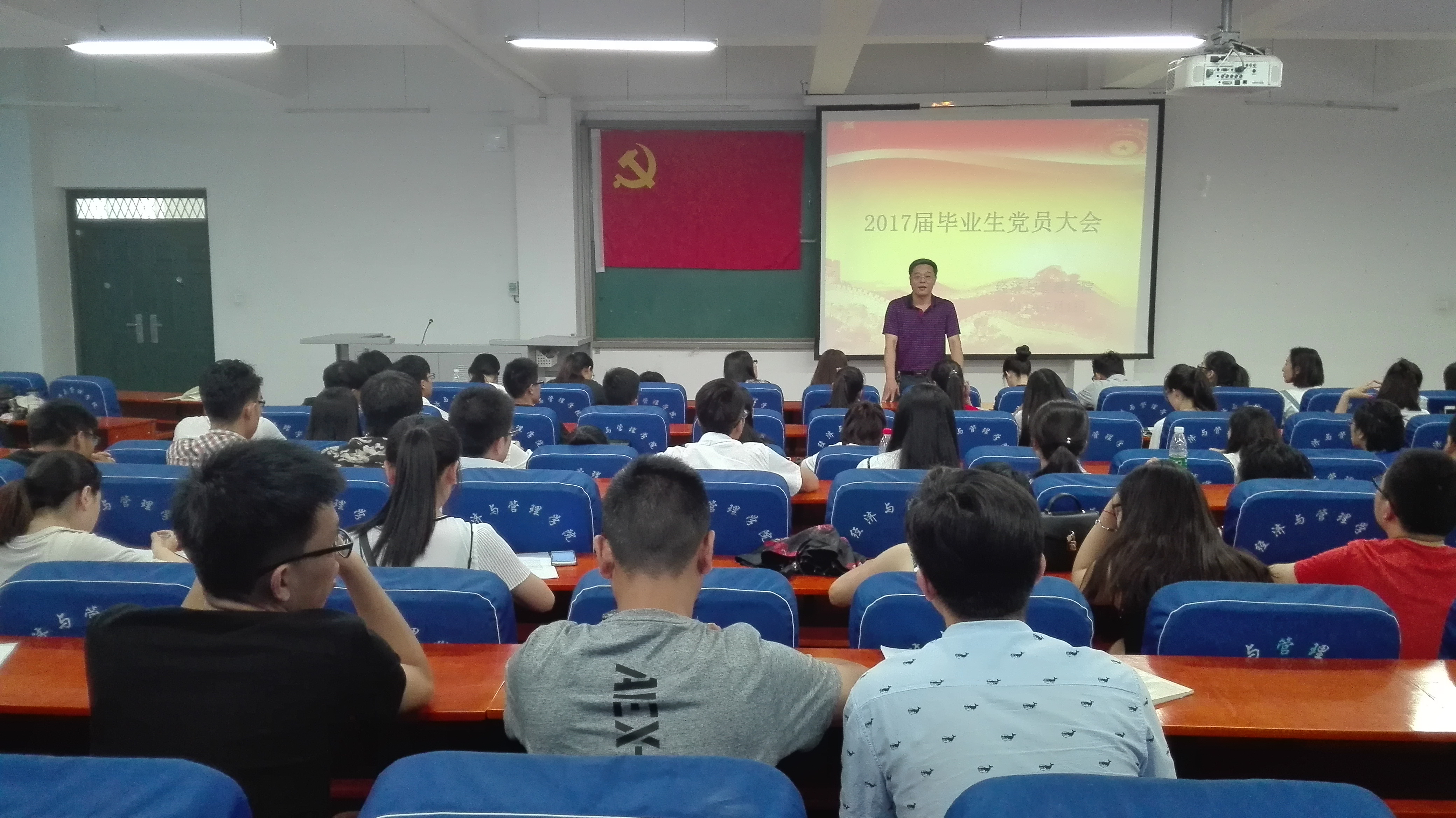 6月1日上午10:30,经济与管理学院在经管楼211召开2017届毕业生党员大会。经济与管理学院党总支书记邢晟、负责党务的王静老师以及100余名毕业生党员参加了此次大会。