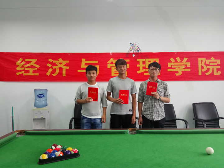 此次比赛采取淘汰赛,共有近20名同学报名参赛。比赛期间,选手本着“友谊第一,比赛第二” 的原则,比心态、比技艺,认真有序地进行比赛,俯身微屈、瞄准、推杆、撞球进洞,选手们时而激烈对阵,时而从容应战,全力以赴展现精湛技艺,比赛悬念丛生,精彩纷呈,现场观众不时为球艺高超的选手和激烈的赛事报以掌声,现场气氛和谐热烈。经过一场场激烈的对决,经济学15-01班王永同学最终夺得了冠军。比赛结束后,我院为获奖选手颁发了荣誉证书及奖品。
