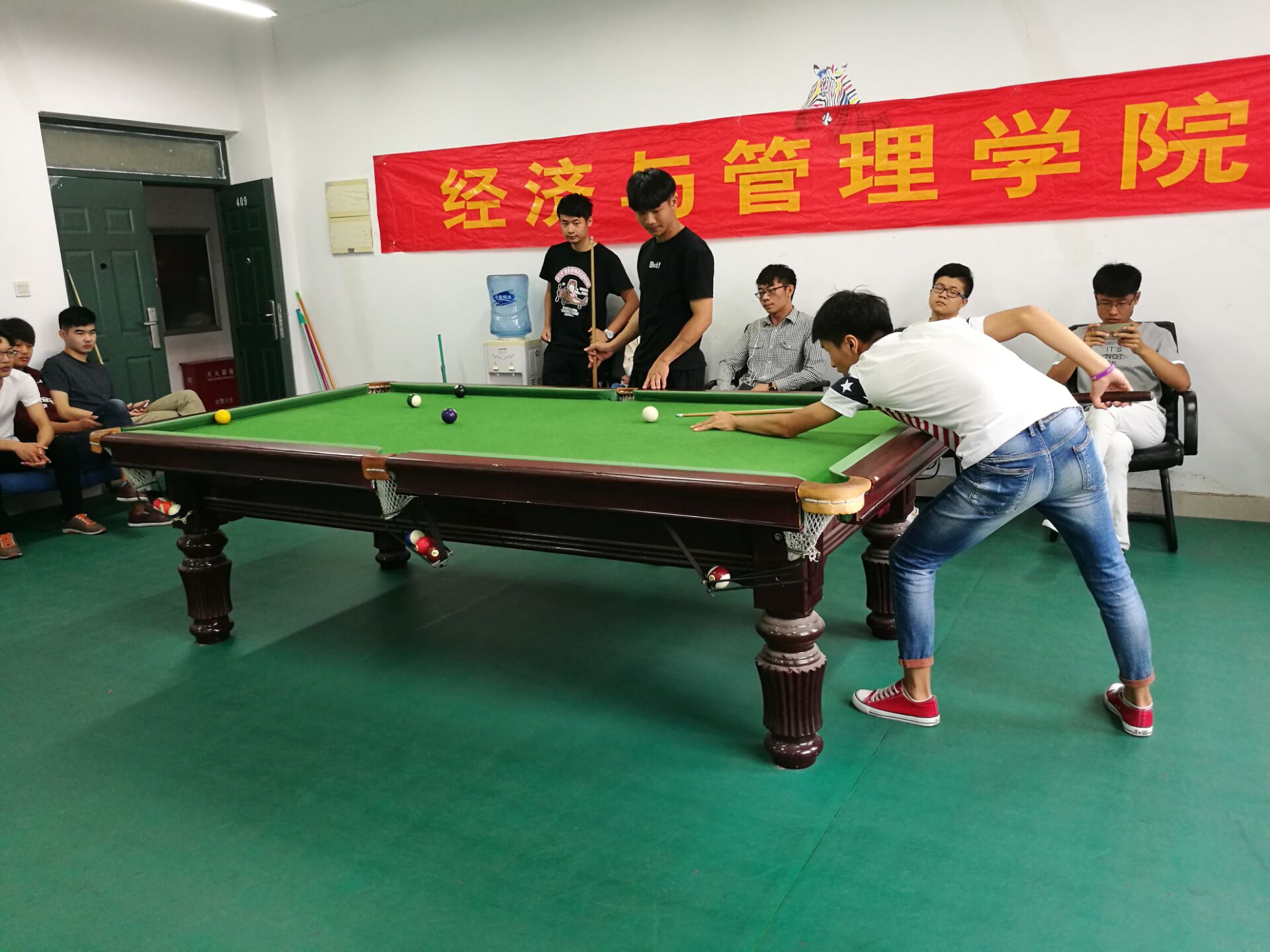 为进一步响应共青团中央、教育部、国家体育总局及全国学联联合启动的大学生“走下网络、走出宿舍、走向操场”主题群众性课外体育锻炼活动的号召,帮助和促进我校广大青年增强体质认知、活跃校园气氛,丰富大学生的课余生活。也为促进我院广大学生积极参与体育活动,努力营造积极向上、健康文明的校园文化氛围。6月3日,经济与管理学院举办了第六届“大学生阳光体育节”之台球比赛。