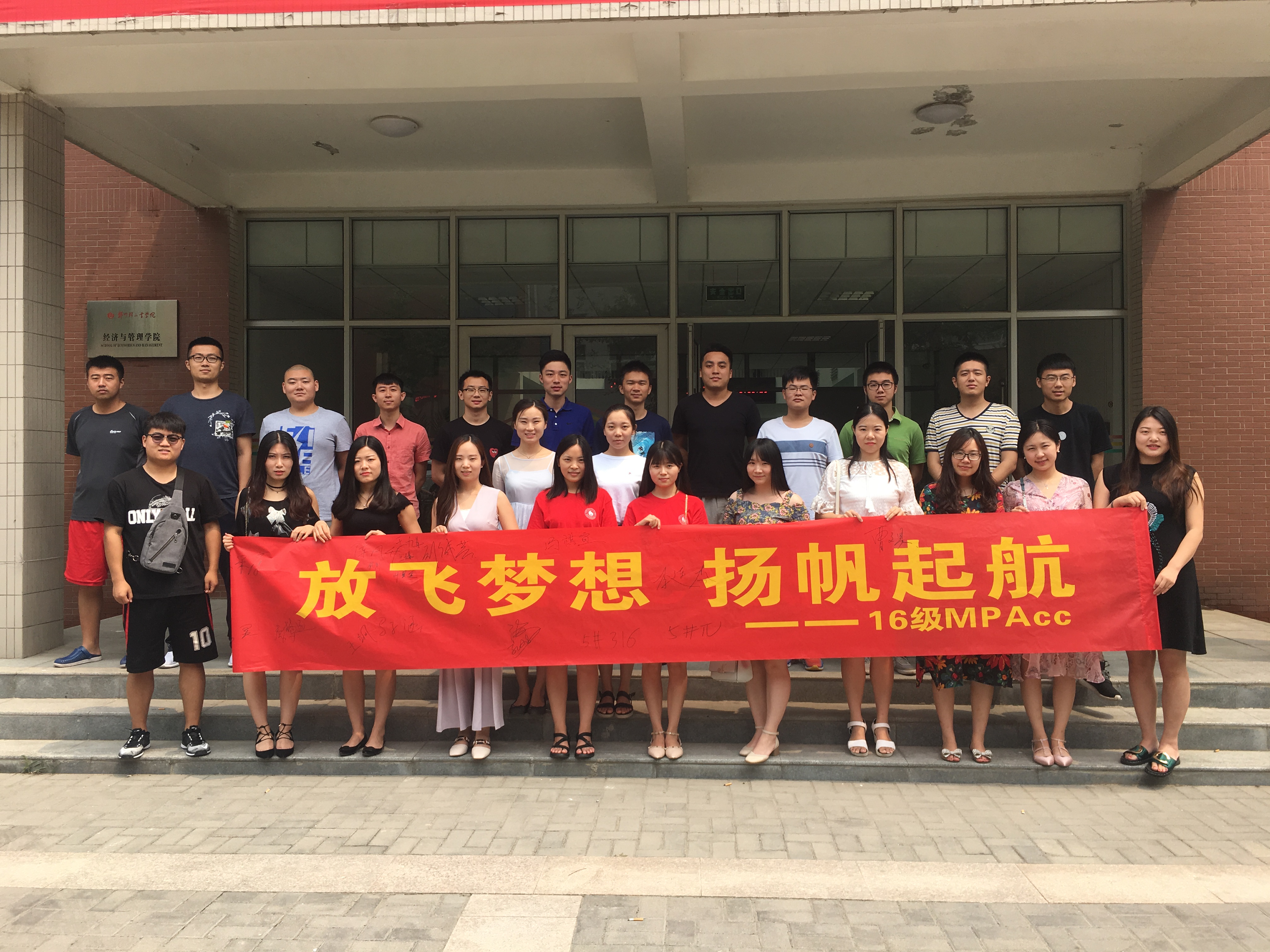 随后,15级学长徐宋康和孙曼丽作为毕业生代表,对16级MPAcc表达了自己的希望,希望同学们能够好好利用好自己剩余不多的研究生生活时间,充分准备毕业论文的同时,多考取一些相关资格证书,获取更多适应职场的技能。最后,16级MPAcc送出了毕业祝福,两届同学同时在条幅上签字留念,并合影留念。此次交流会的顺利开展,不仅促进了与毕业生之间的交流,也为在校研究生他们今后的进一步发展奠定了基础。