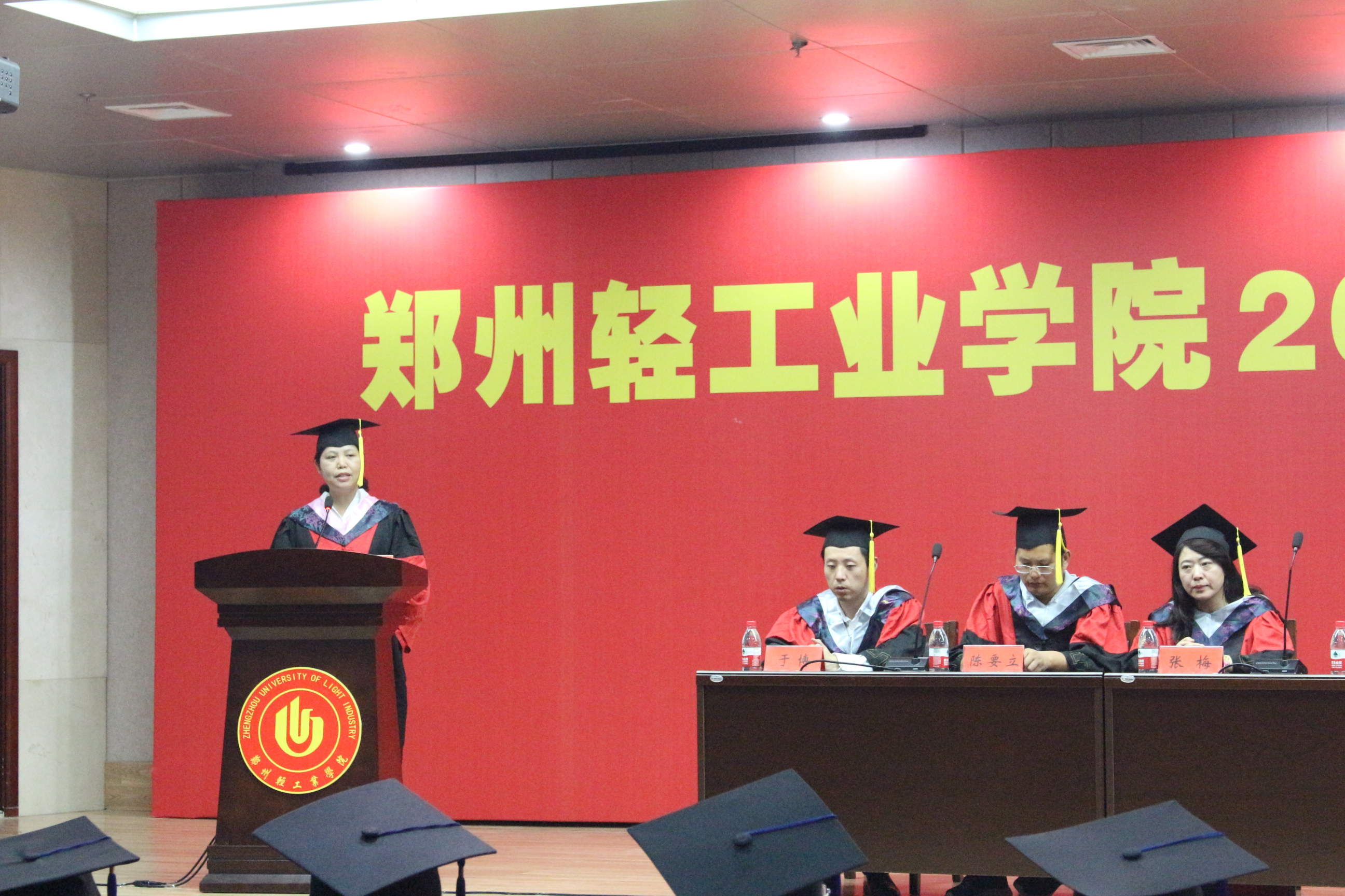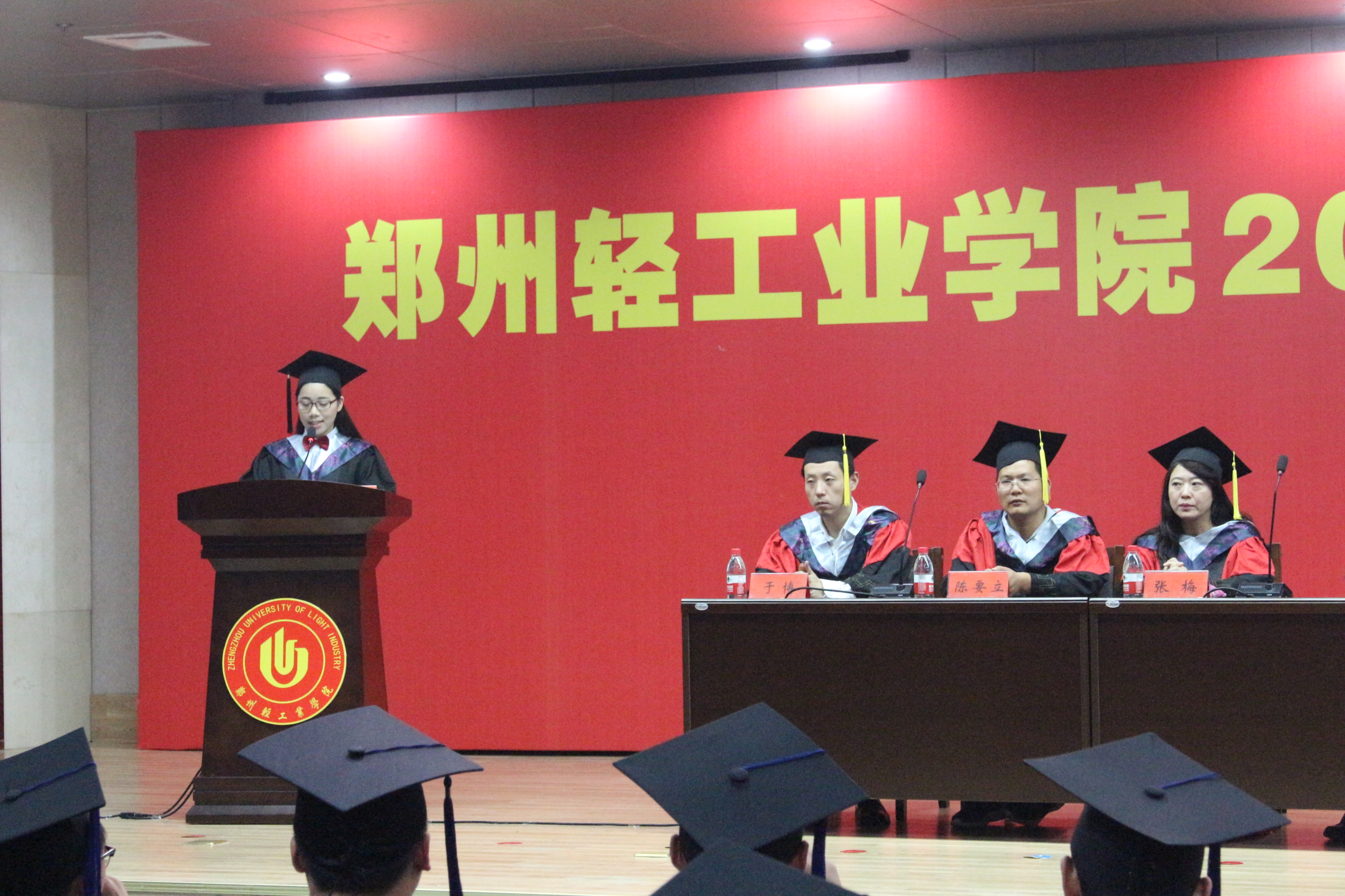 学位授予仪式在雄壮的国歌声中拉开帷幕。经济与管理学院副院长符加林宣读了《关于授予郭腾飞等34名2017届毕业研究生硕士学位的决定》,副院长仝新顺宣读了《关于授予彭涛等568名2017届本科毕业生学士学位的决定》。学院共有34名2017届毕业研究生获硕士学位,其中管理学硕士8人,工程硕士1人,工商管理硕士(MBA) 2人,会计专硕(MPACC)23人;学院共有568名2017届本科毕业生获学士学位,其中管理学学士472名,经济学学士96名。国家奖学金获得者、河南省优秀毕业生、校十佳毕业生买彤彤代表毕业生发言,她分享了自己大学四年不断成长的心路历程,大学的朝夕相处、同窗情谊、耕耘收获,并表示将牢记领导和老师们的殷切期望,不忘校训,以饱满的热情和昂扬的斗志投身社会,服务社会,奉献青春,实现价值,感恩母校。