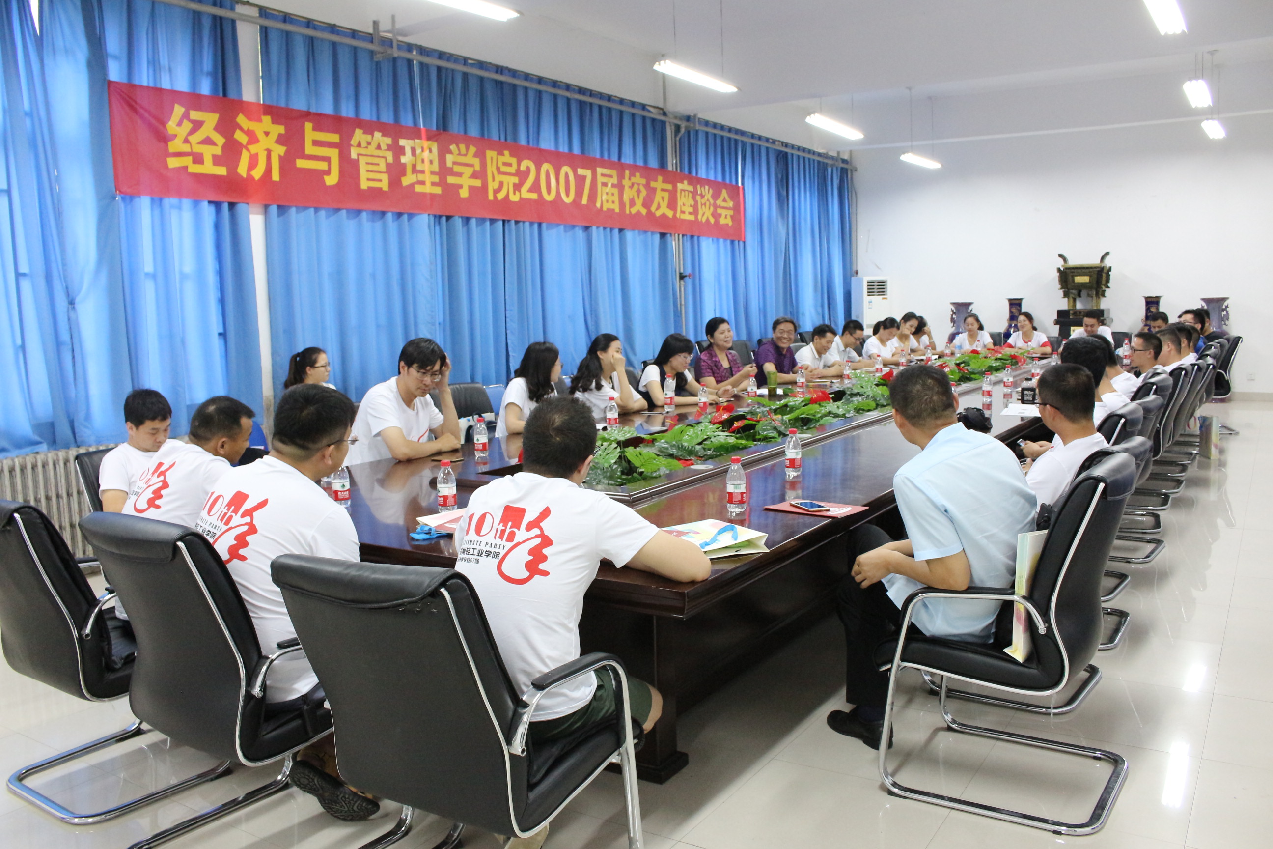 几载风华难忘同窗情,今朝相聚共叙母校恩。7月8日下午15:00,经济与管理学院在经管楼116会议室成功举办了2007届经济学专业校友座谈会。党总支书记邢晟、院长刘珂、副书记陈章美、辅导员老师张瑞凤、时军鸽、刘海廷以及30余名校友代表参加了座谈会。座谈会由邢晟书记主持。